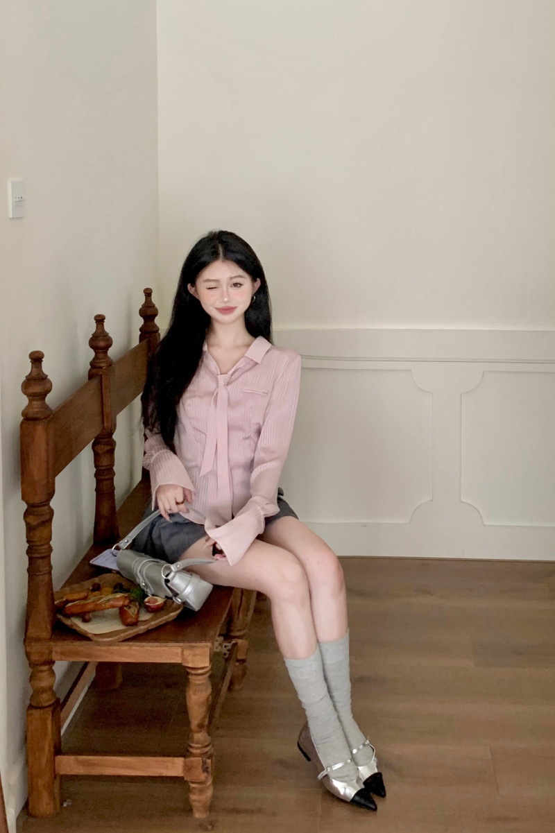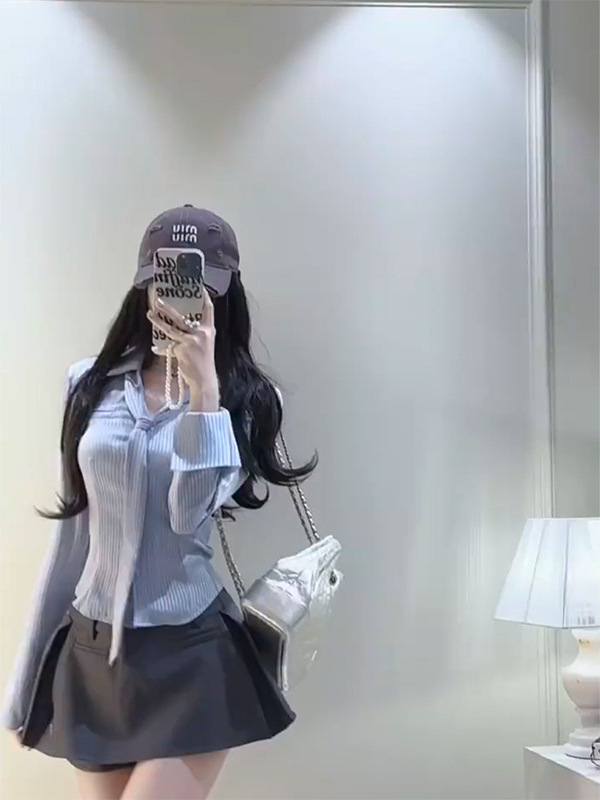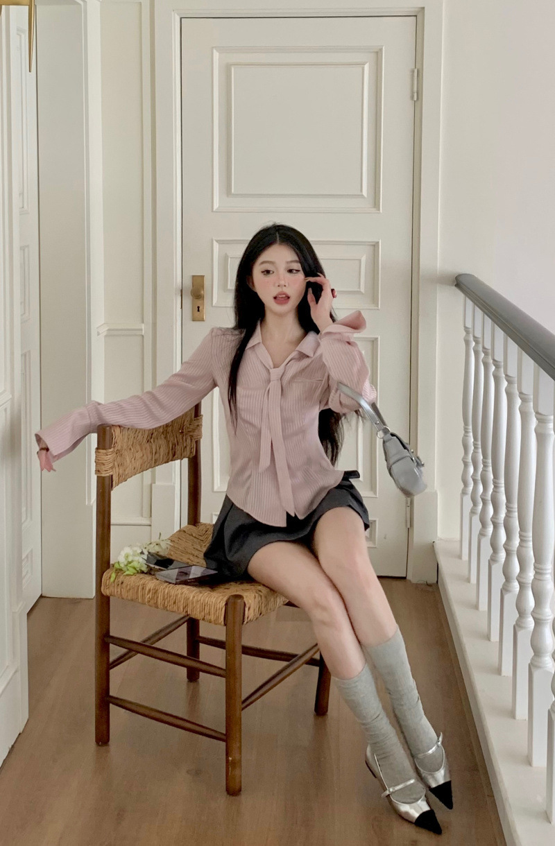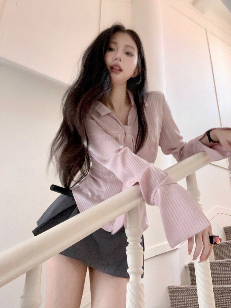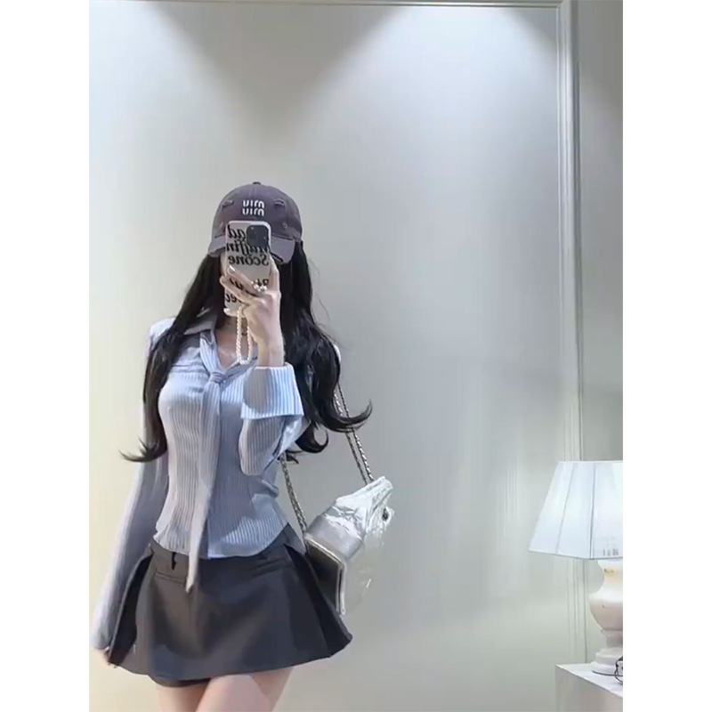 디자인 순수한 욕망 허리 스트라이프 셔츠 긴팔 여성 2025 봄 여름 패션 슬림핏 다용도 탑