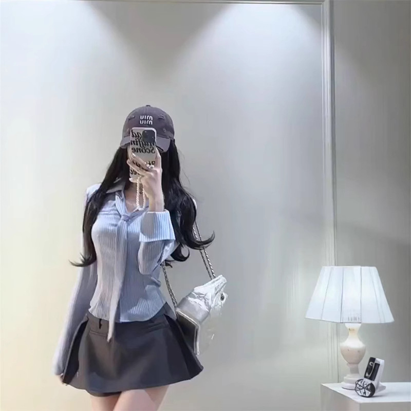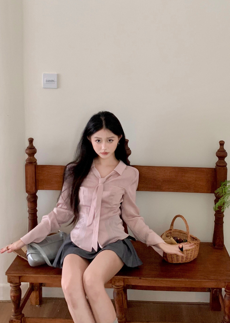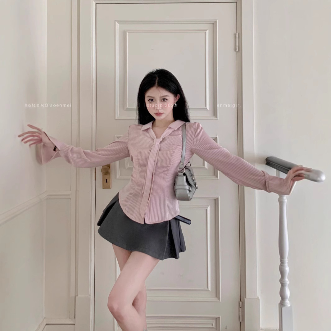 디자인 순수한 욕망 허리 스트라이프 셔츠 긴팔 여성 2025 봄 여름 패션 슬림핏 다용도 탑스토어 가기