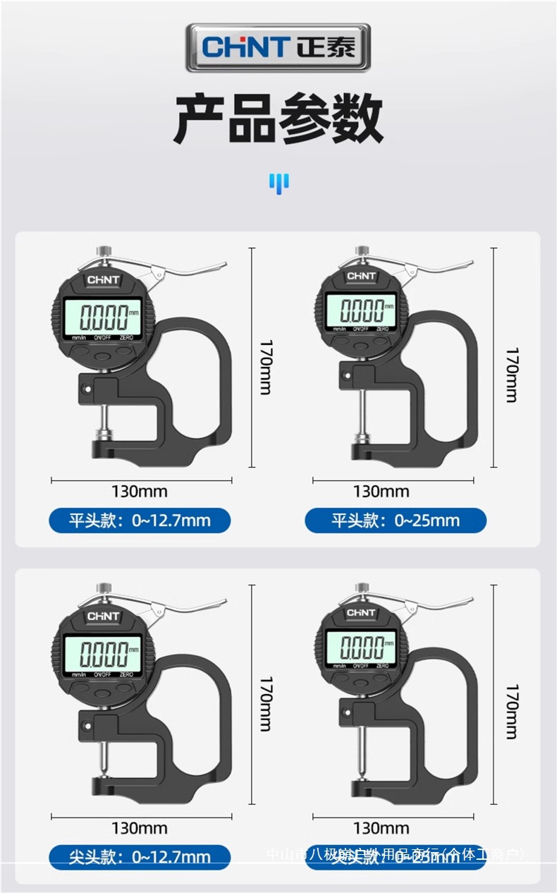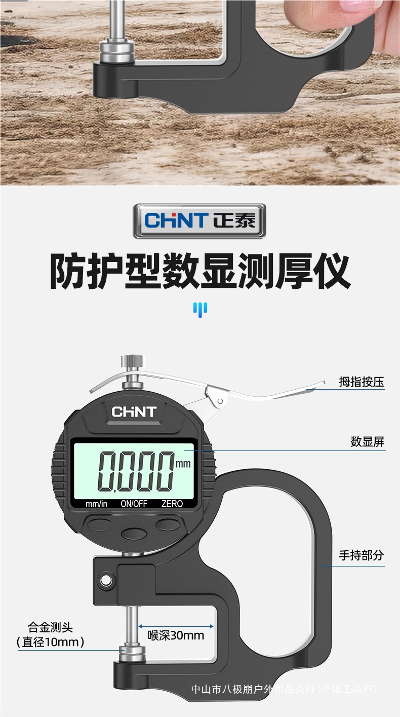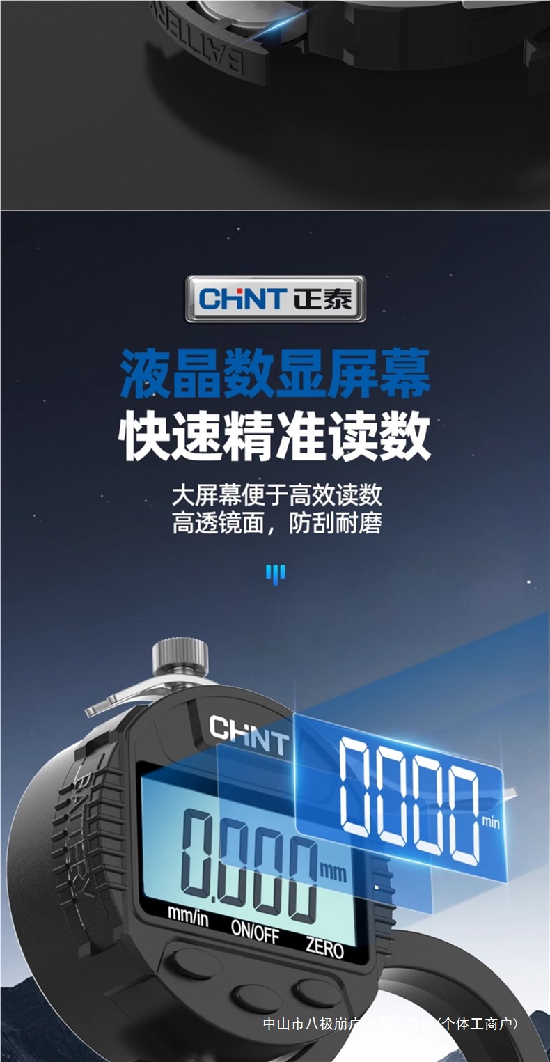 Chint 두께 측정기 고정밀 종이 두께 측정기 디지털 디스플레이 두께 게이지 두께 눈금자 벽 두께 필름 두께 천백극