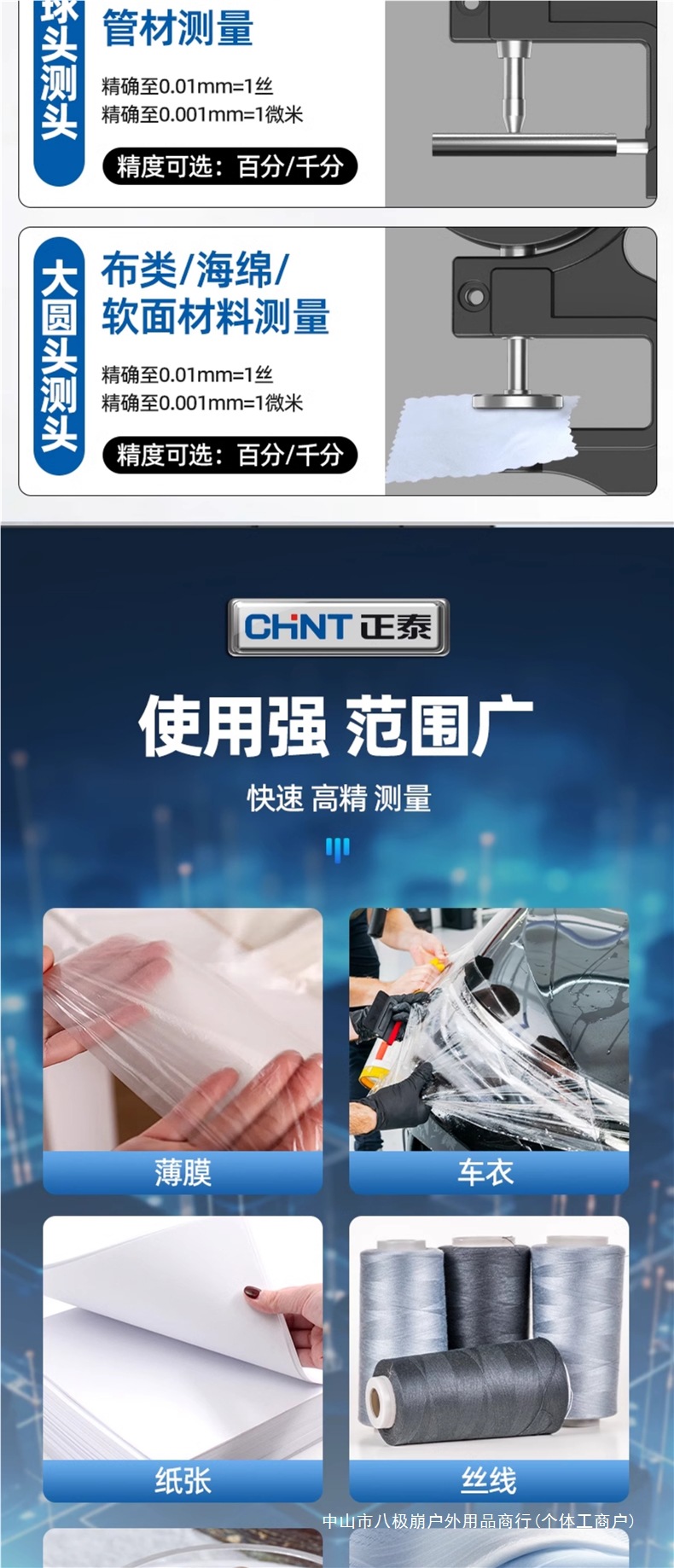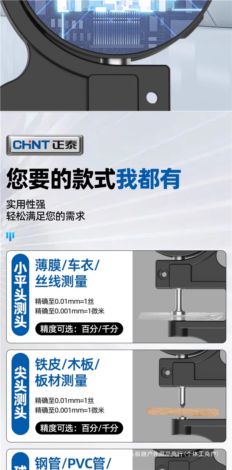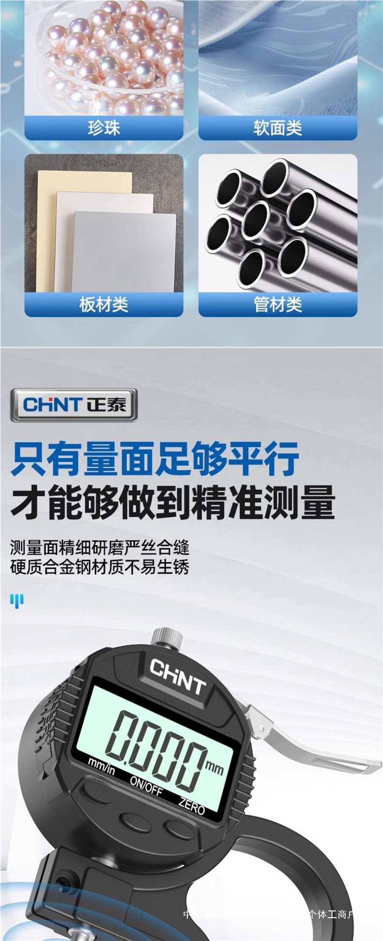 Chint 두께 측정기 고정밀 종이 두께 측정기 디지털 디스플레이 두께 게이지 두께 눈금자 벽 두께 필름 두께 천백극