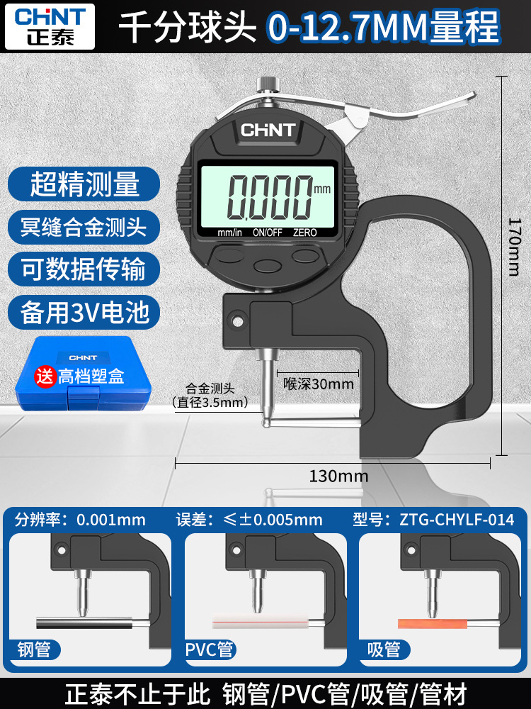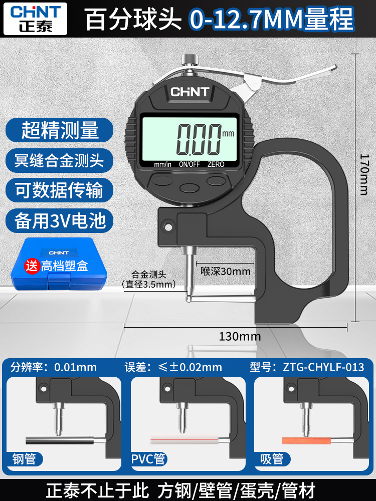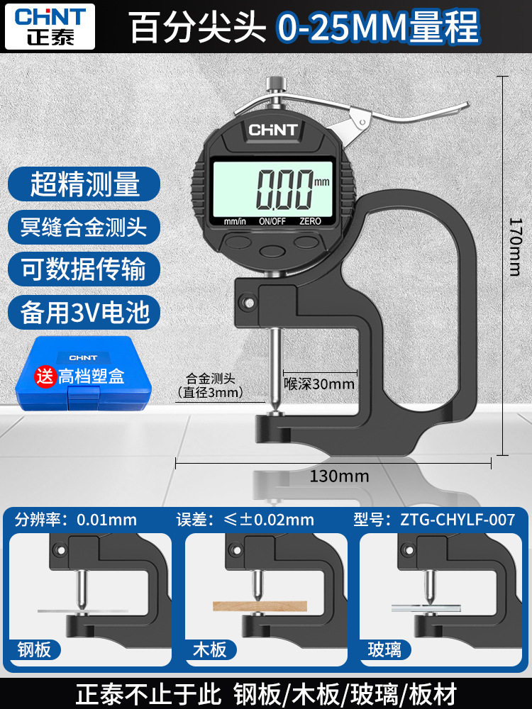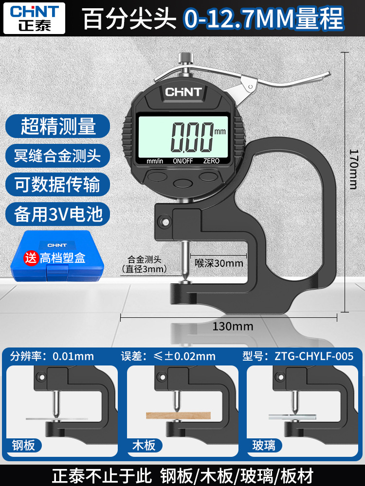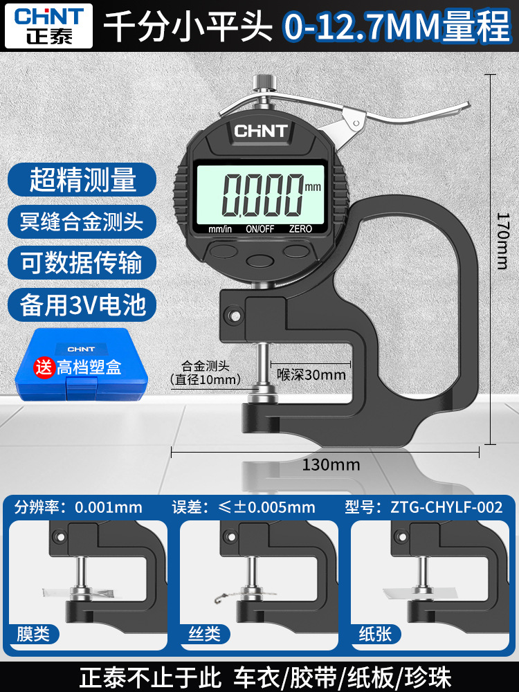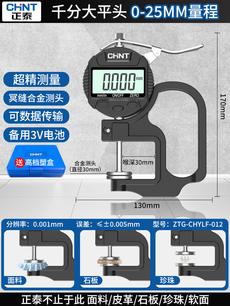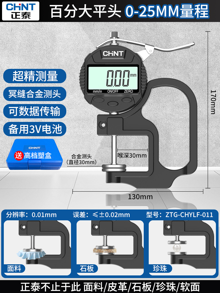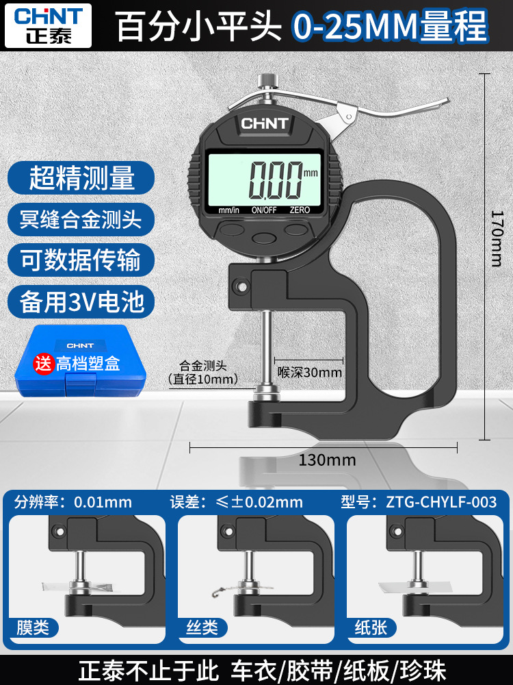 Chint 두께 측정기 고정밀 종이 두께 측정기 디지털 디스플레이 두께 게이지 두께 눈금자 벽 두께 필름 두께 천백극스토어 가기