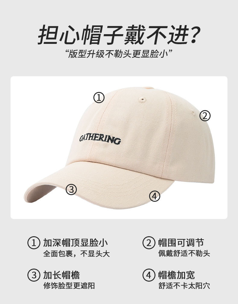 한국식 모자, 레바 자수 문자 야구 모자, 사계절 패셔너블한 캐주얼 피크 캡, 여성용 소프트 탑 인터넷 연예인 태양 모자스토어 가기