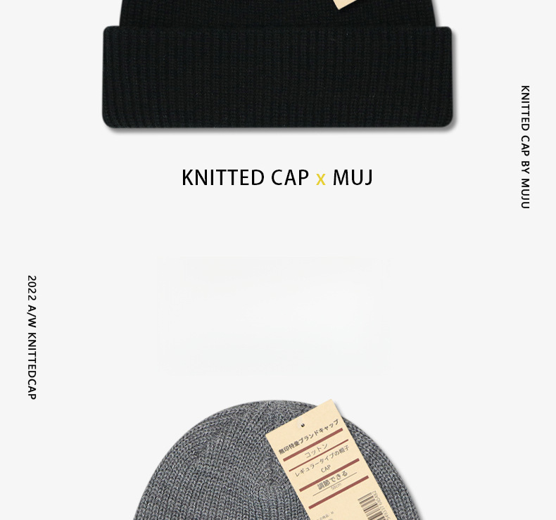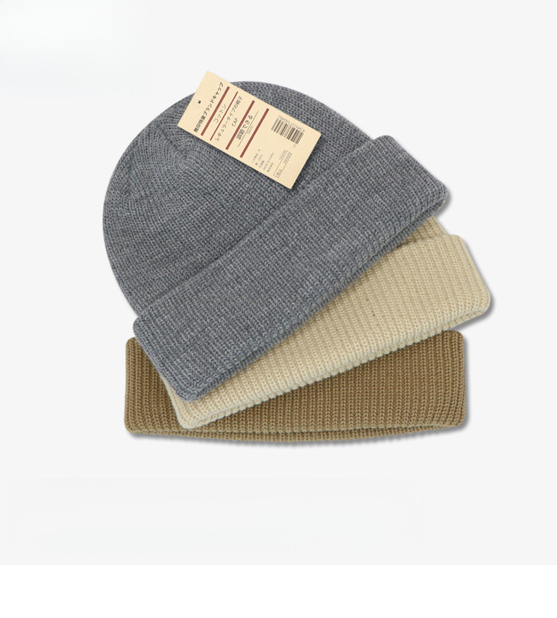 무인쇄(muj) 다용도 겨울 모자, 남성용 방풍 일본식 니트 모자, 큰 머리둘레 여성용 멜론캡, 쿨한 스타일 모자스토어 가기