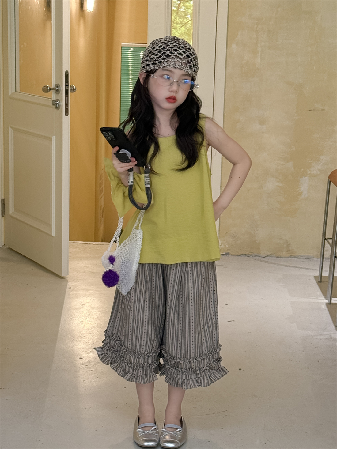 꽃과 아이 소녀 자른 바지 2025 여름 새로운 러플 디자인 어린이 얇은 캐주얼 바지 유행