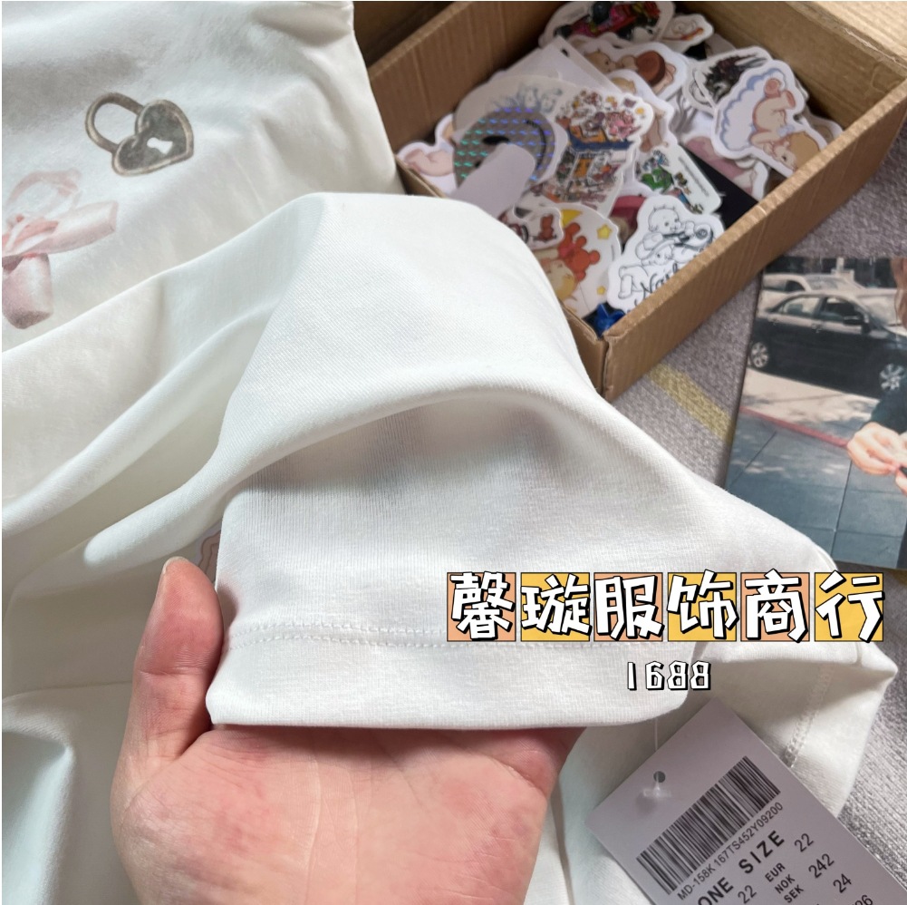BM 스타일 새로운 BMM 반팔 티셔츠 발레 소녀 토끼 인쇄 라운드 넥 달콤하고 매운 슬림 탑 여성스토어 가기