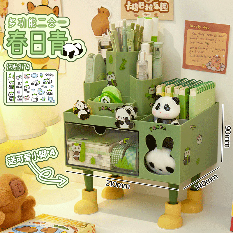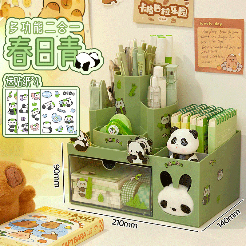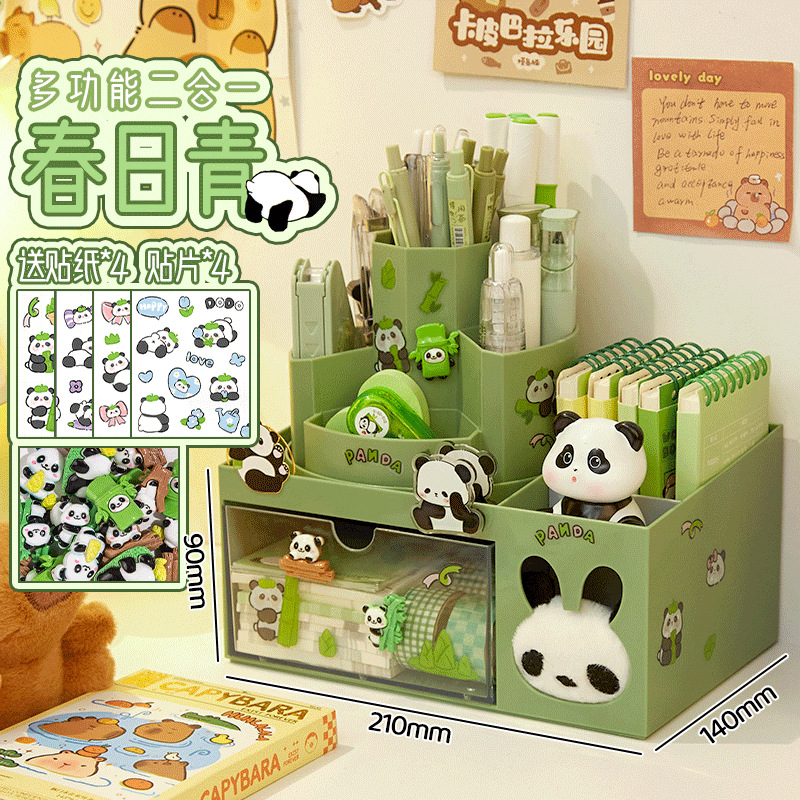 • 그린/2-in-1 펜홀더 보관함 + 팬더 스티커*4