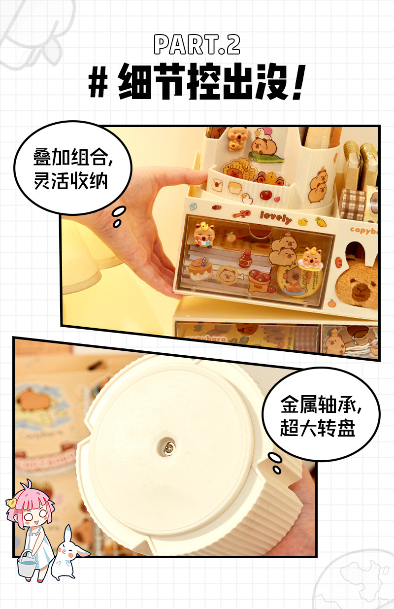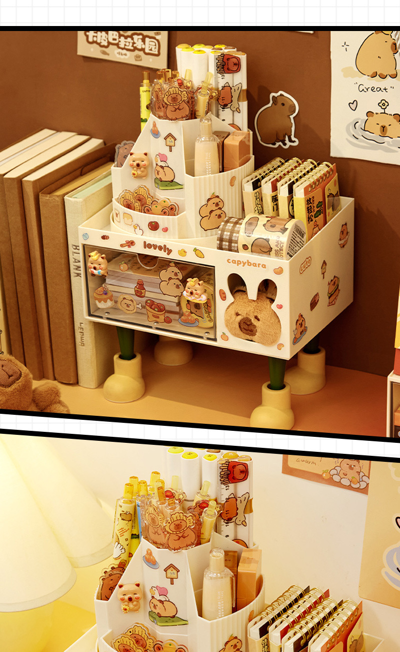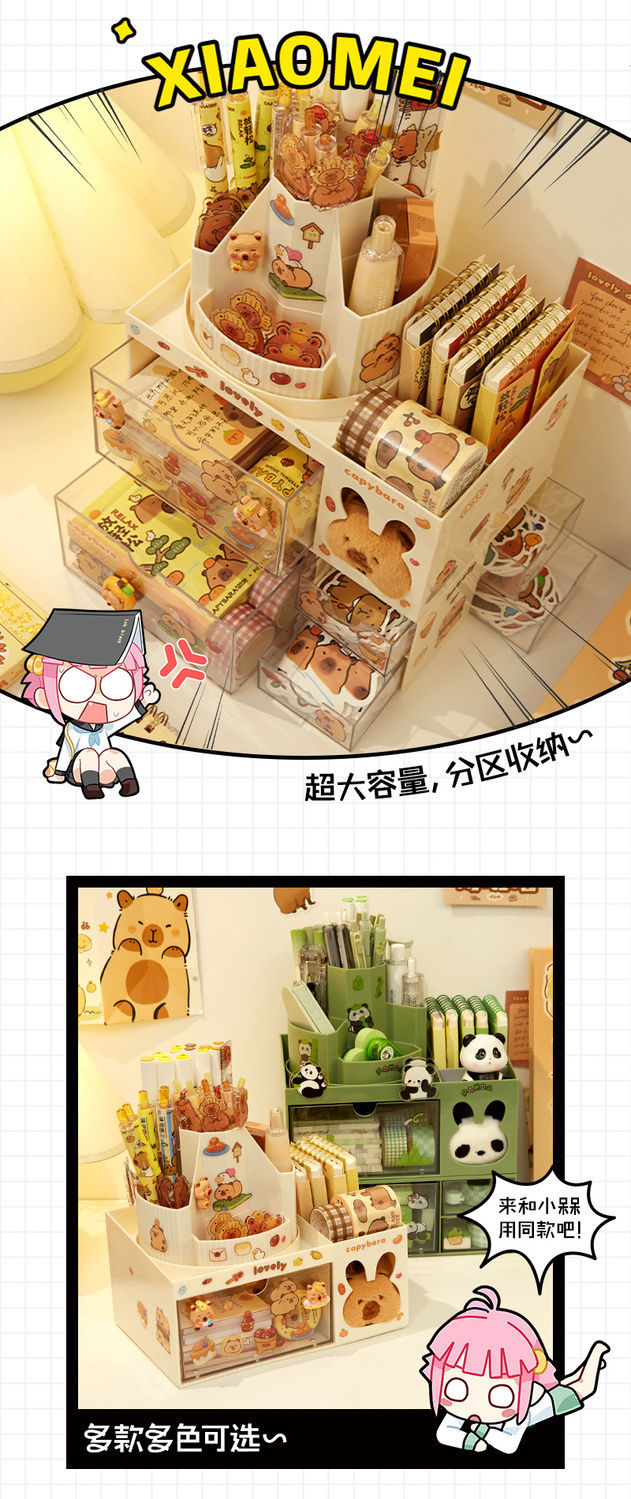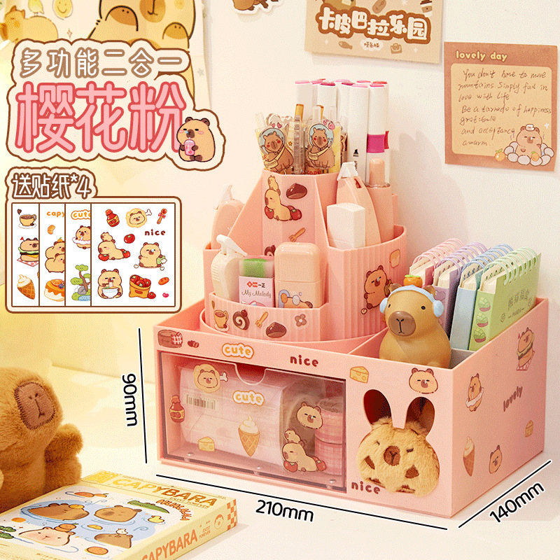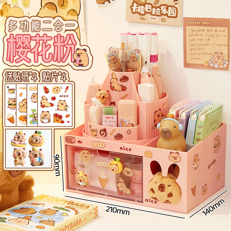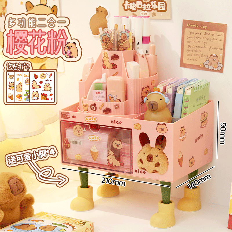 회전 펜 홀더 어린이 소녀 학생 책상 데스크탑 서랍 스타일 보관 상자스토어 가기
