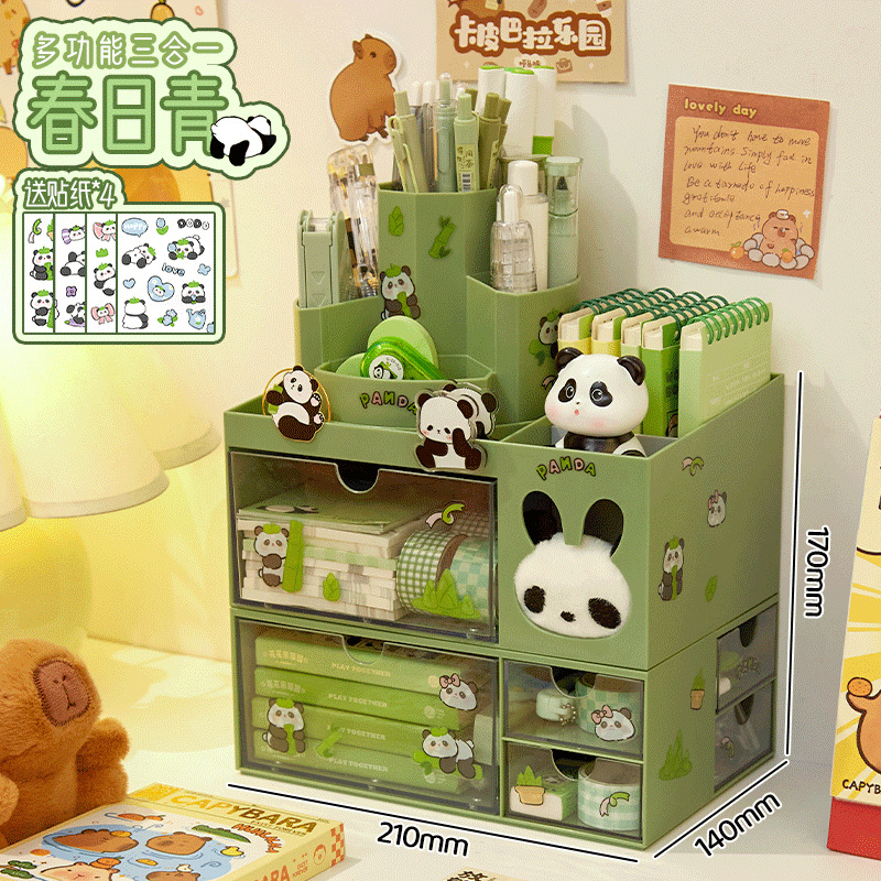 • 그린/3-in-1 다기능 펜 홀더 + 팬더 스티커 4개