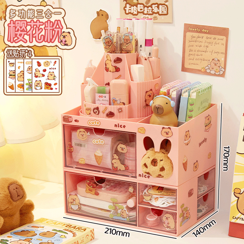 • 핑크/3-in-1 다기능 펜 홀더 + 카피발라 스티커 4개