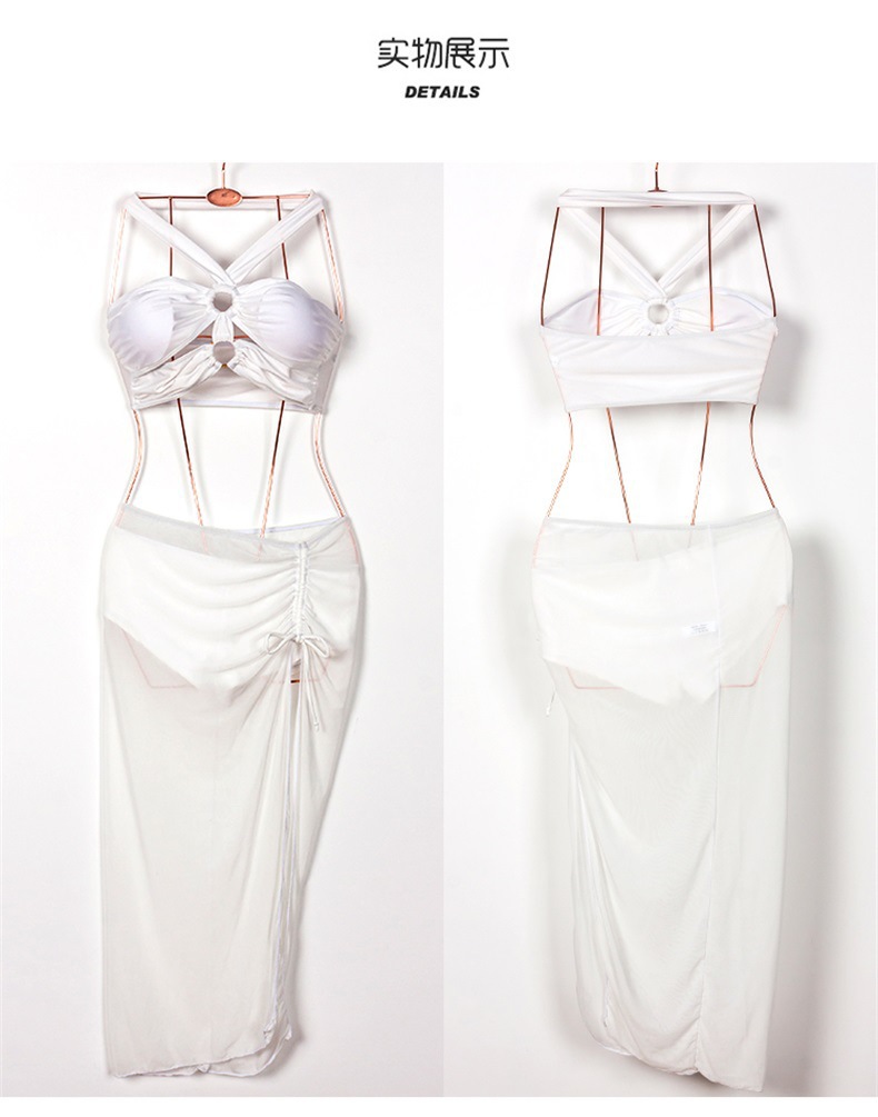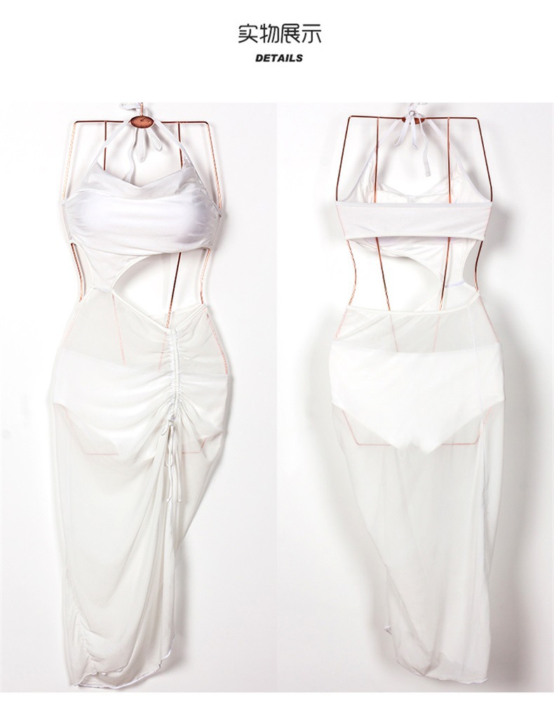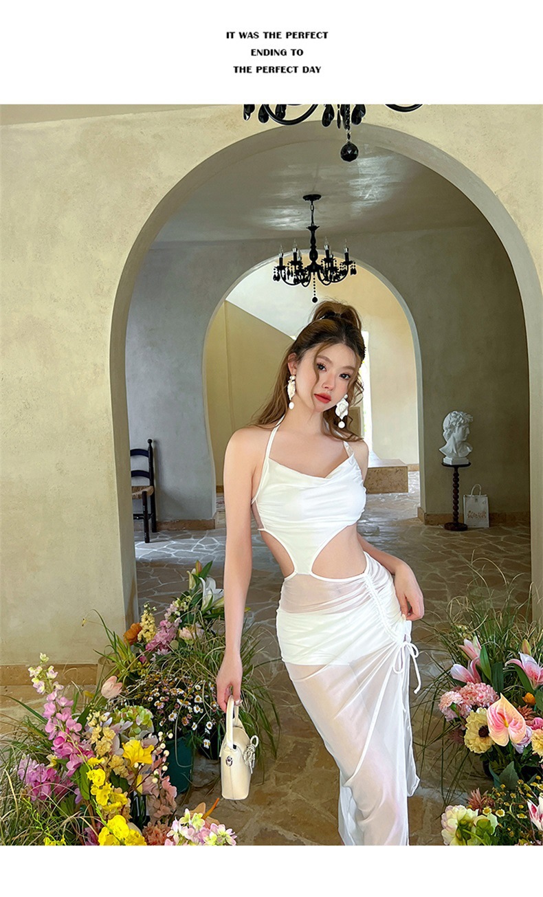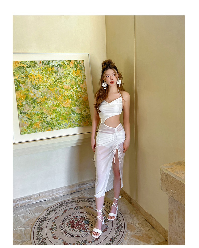 유럽과 미국의 화이트 슬링 스파이스 걸스 스타일 섹시한 작은 가슴 슬림 비치 긴 원피스 요정 휴가 수영복 여성