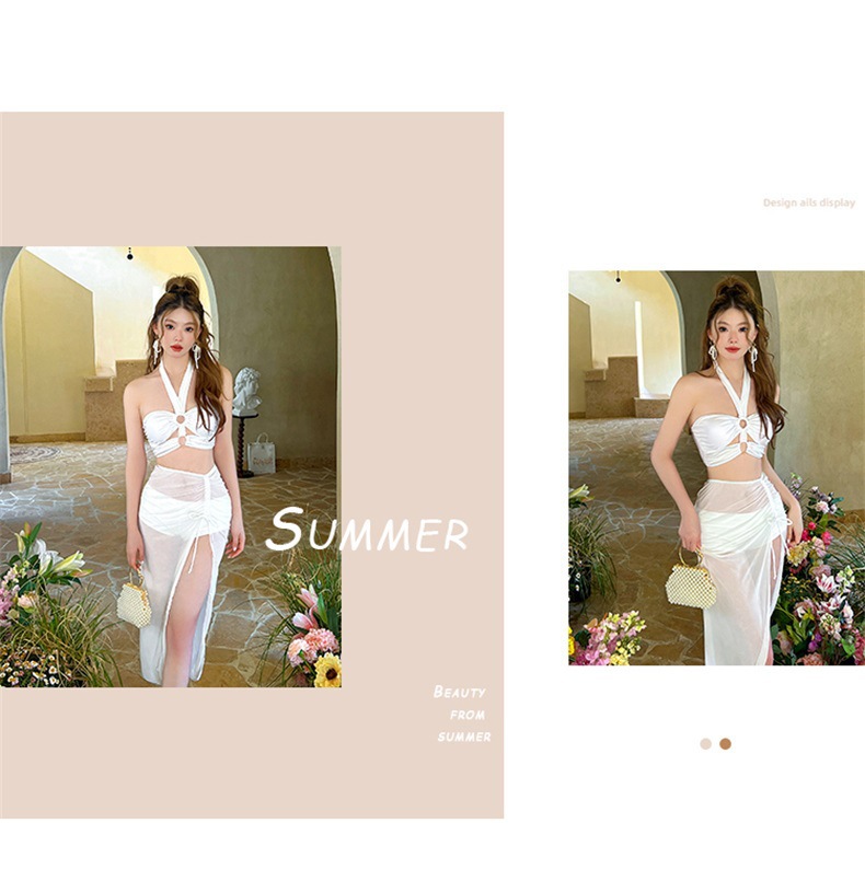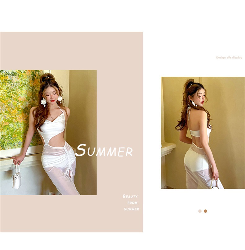 유럽과 미국의 화이트 슬링 스파이스 걸스 스타일 섹시한 작은 가슴 슬림 비치 긴 원피스 요정 휴가 수영복 여성스토어 가기