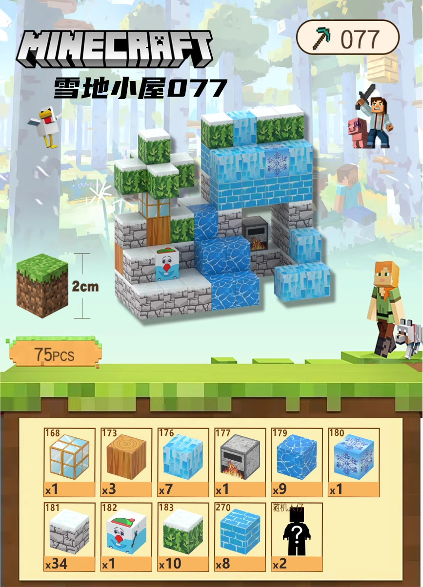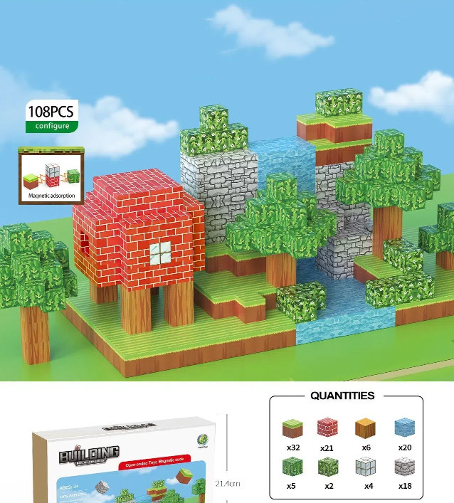 마인크래프트 마그네틱 블록 빌딩 블록 세트 모델 1~6개 고품질 장난감 게임 크로스보더 주변 장면