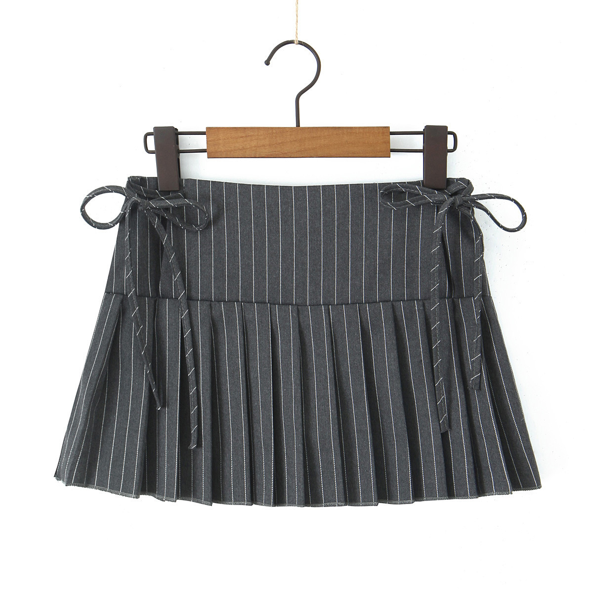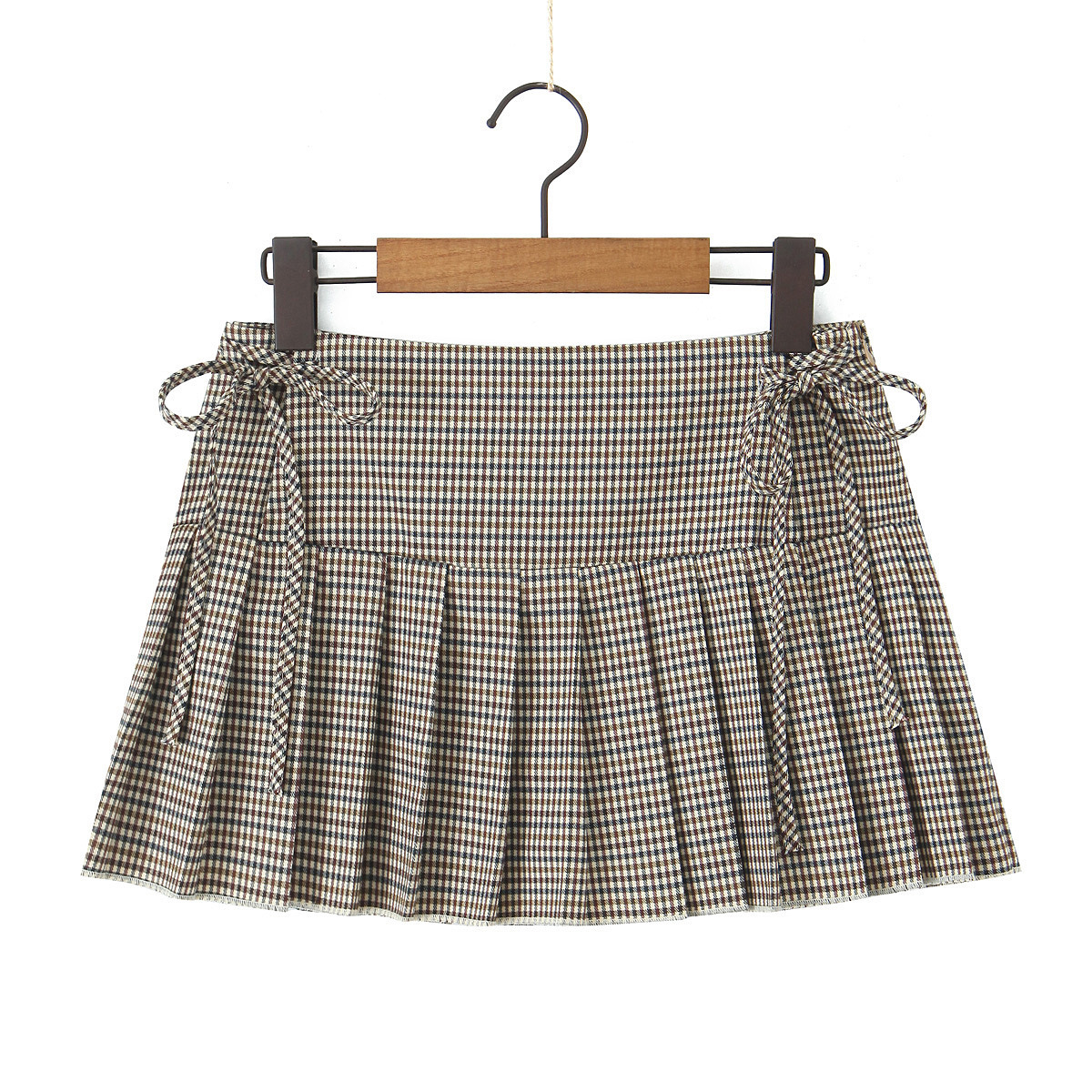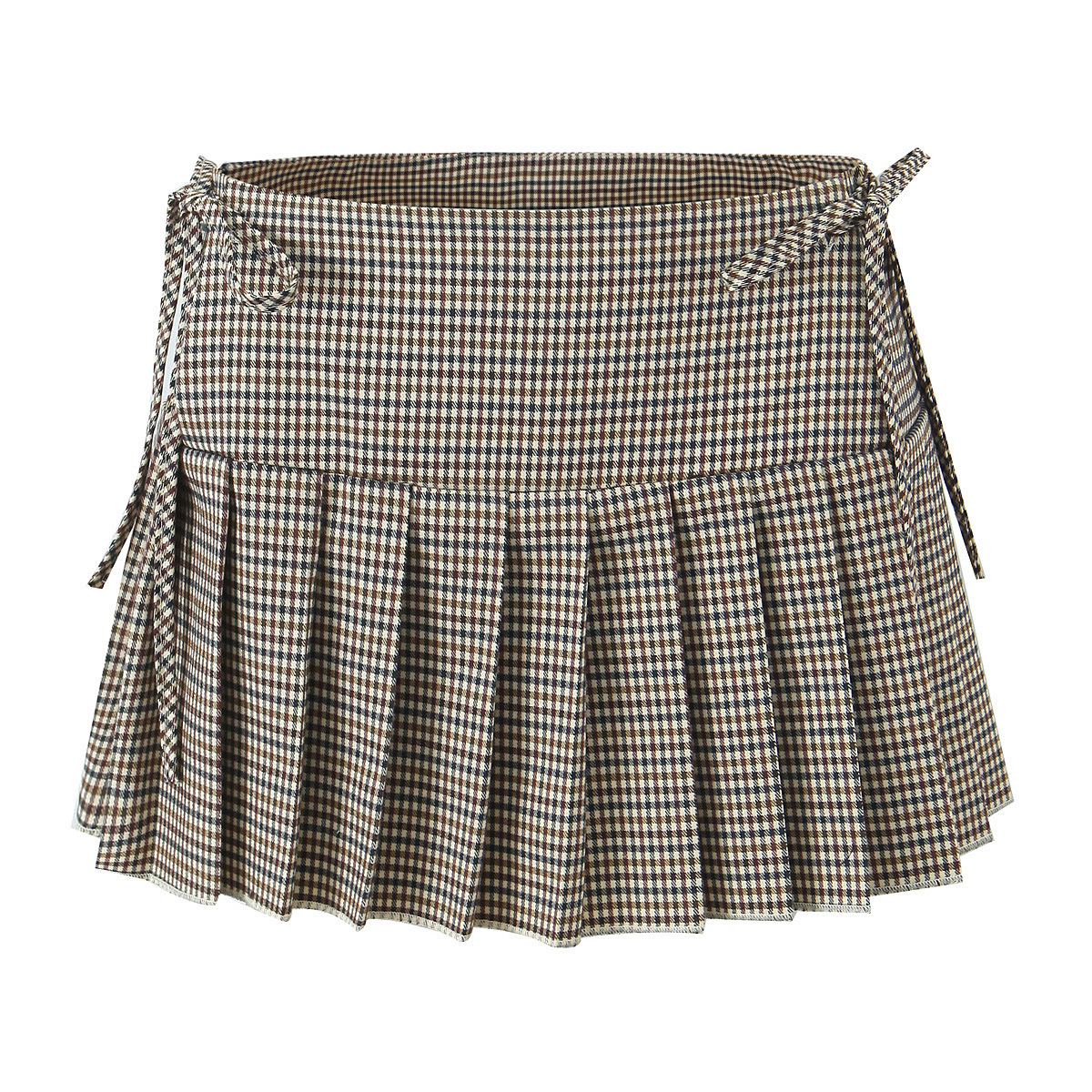 가을 새로운 대학 스타일 패턴 주름 미니 스커트 섹시한 뜨거운 소녀 낮은 허리 레이스 업 노출 방지 스커트스토어 가기