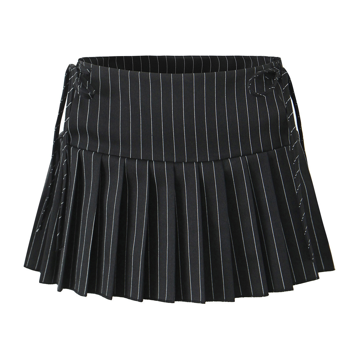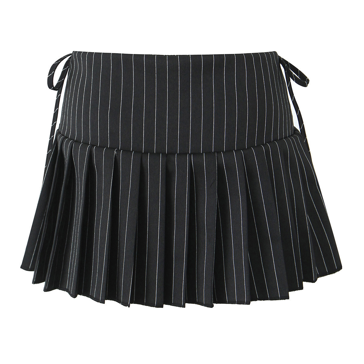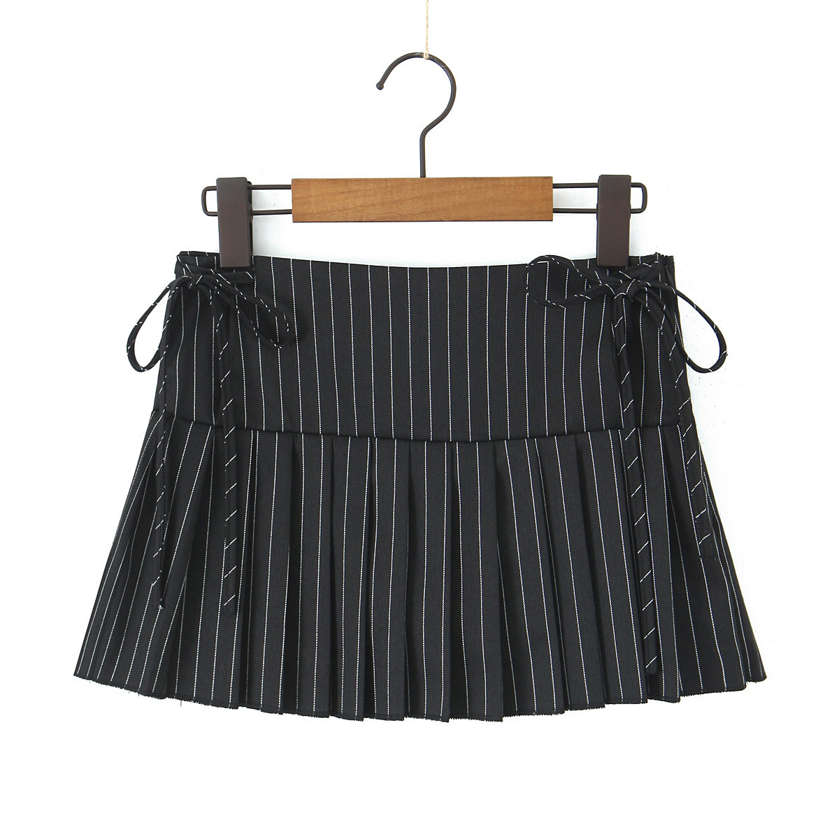 가을 새로운 대학 스타일 패턴 주름 미니 스커트 섹시한 뜨거운 소녀 낮은 허리 레이스 업 노출 방지 스커트스토어 가기