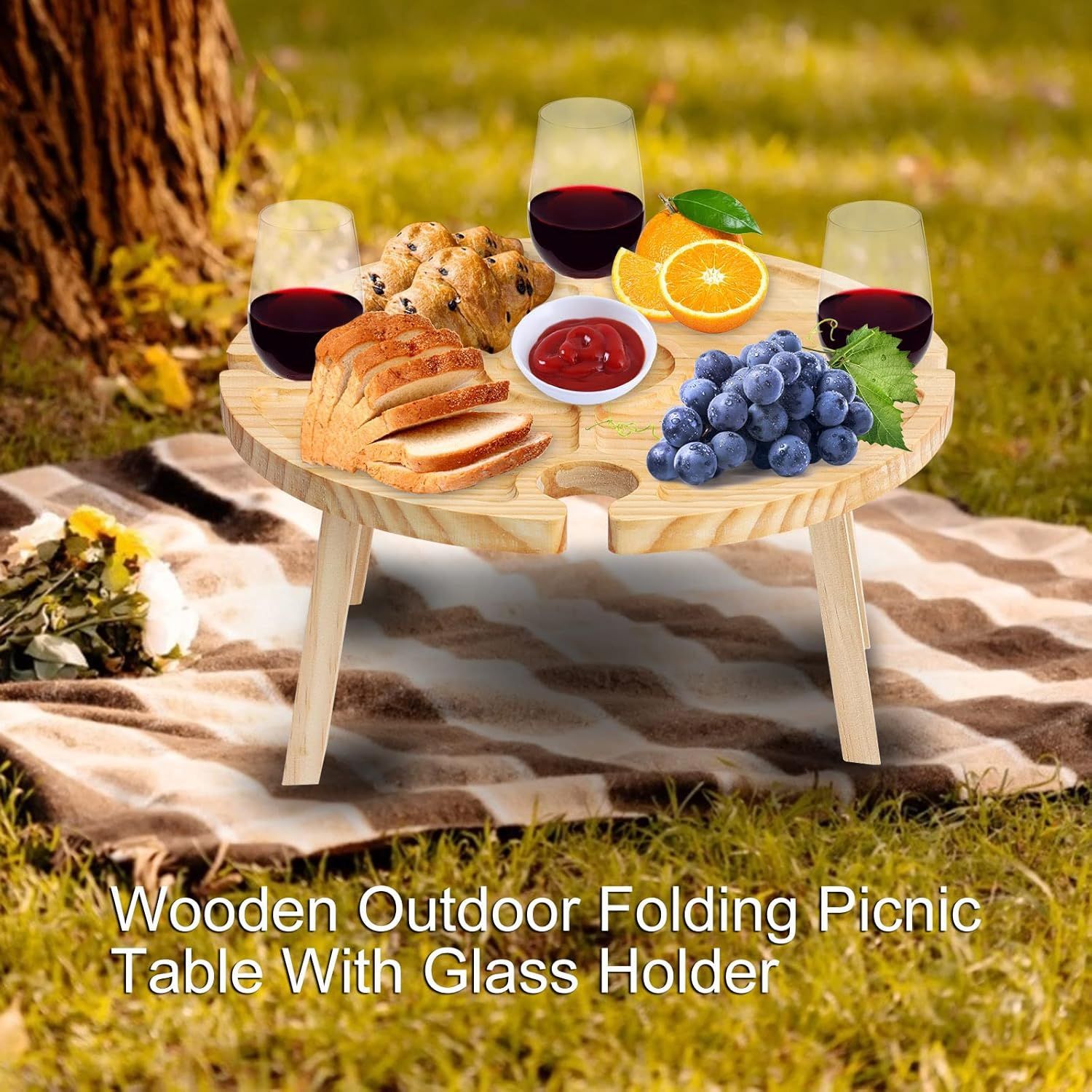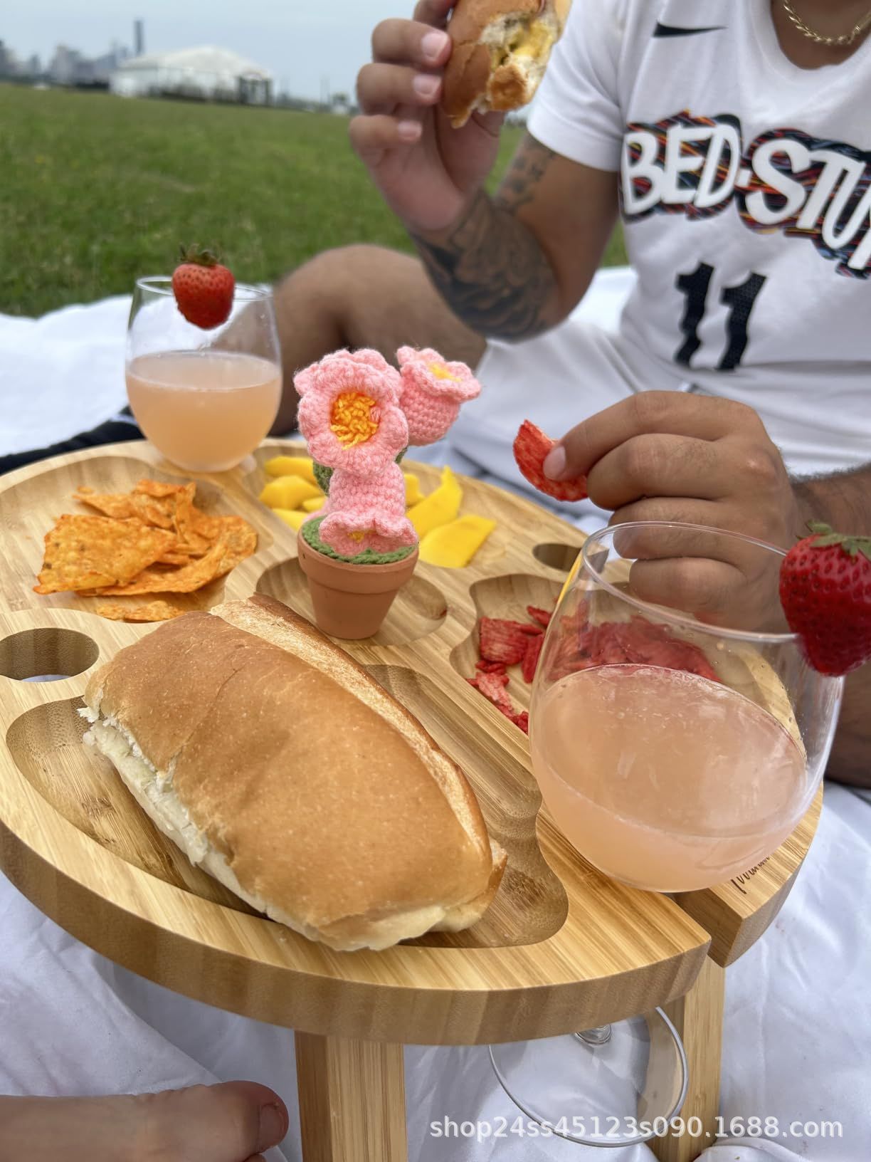 야외 피크닉 와인 테이블 나무 말린 과일 과일 접시 접이식 트레이 와인 랙 단단한 나무 트레이 야외 스낵스토어 가기