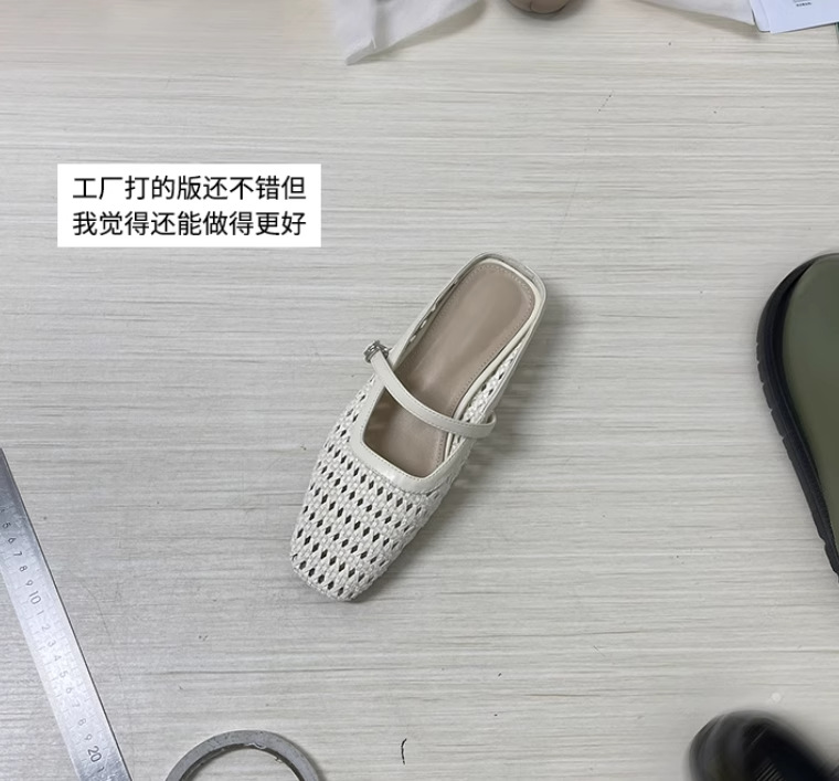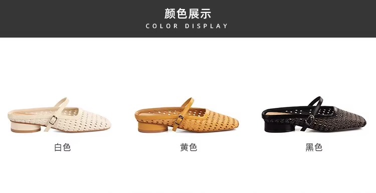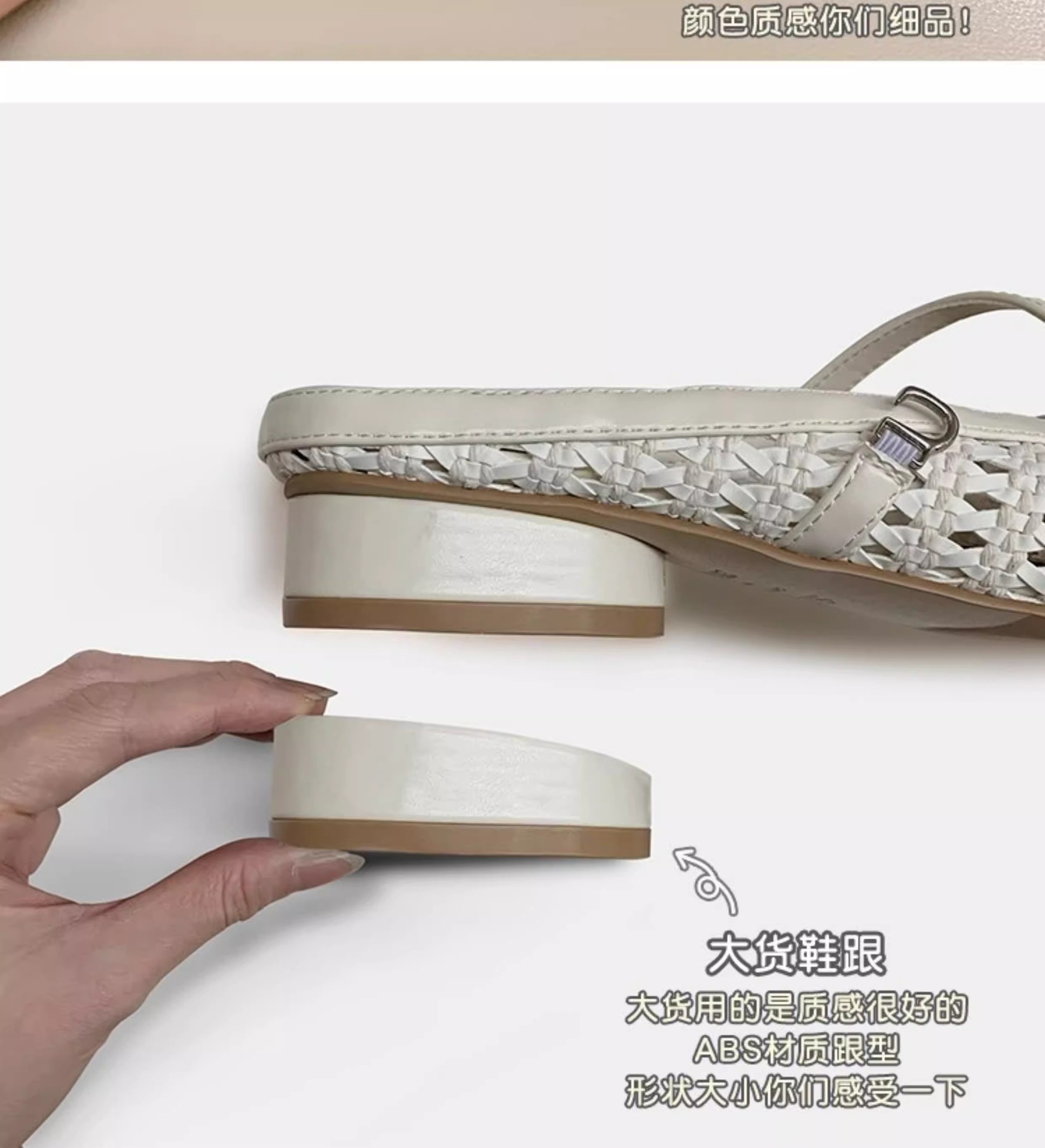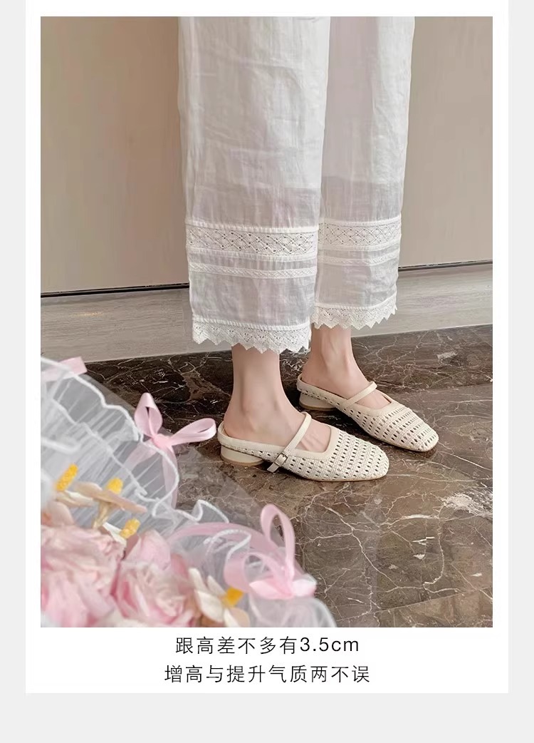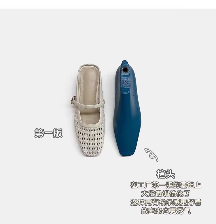 두꺼운 힐 뮬러 여성용 여름 의상 비치 우아한 발가락 샌들을 곁들인 빈티지 짠 할로우 스퀘어 발가락 하프 슬리퍼스토어 가기