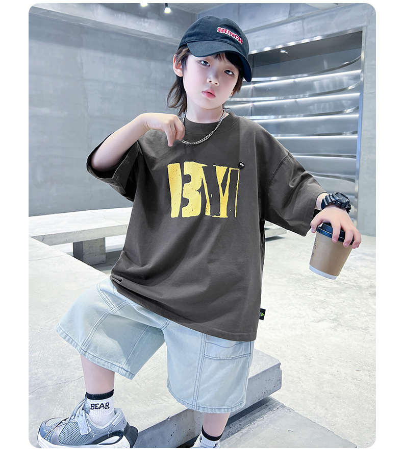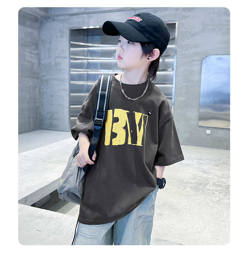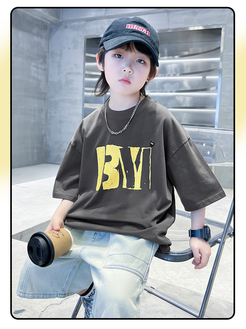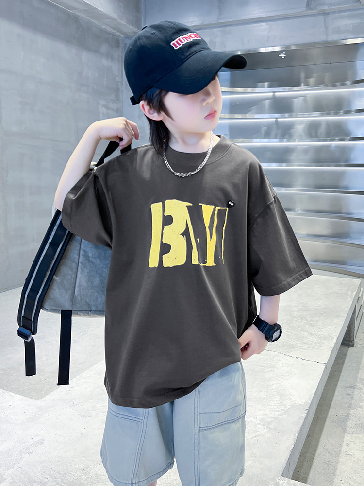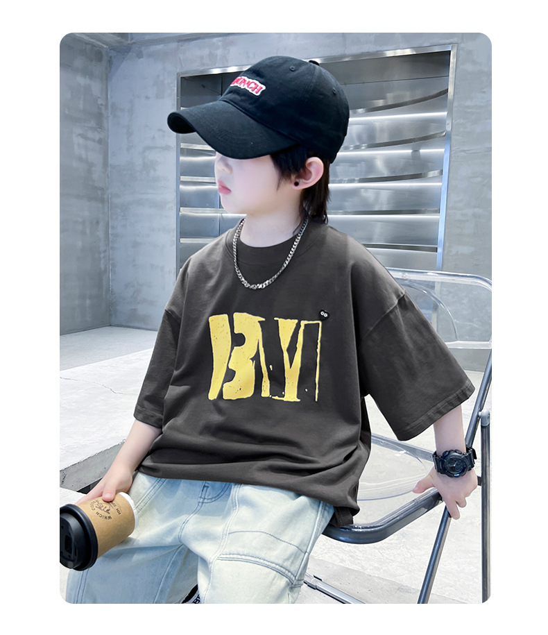 소년 여름 코튼 반팔 티셔츠 2025 새로운 도착 어린이 반소매 티셔츠 소년 여름 아이스 탑