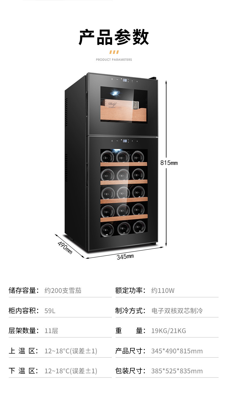 Jialong 18C 전자 담배 캐비닛 항온 및 보습 이중 도어 이중 온도 미니 소형 가정용 차와 레드 와인 캐비닛
