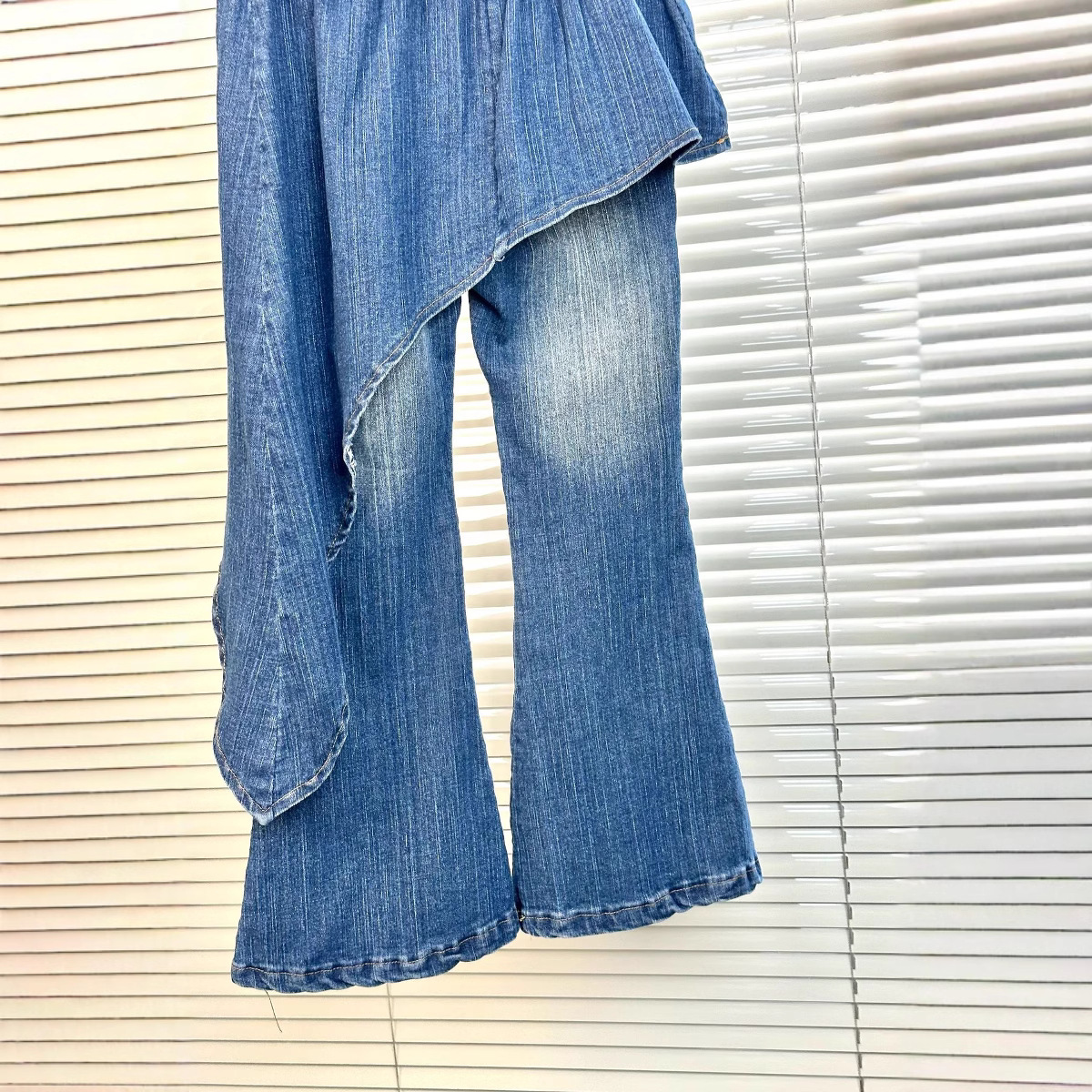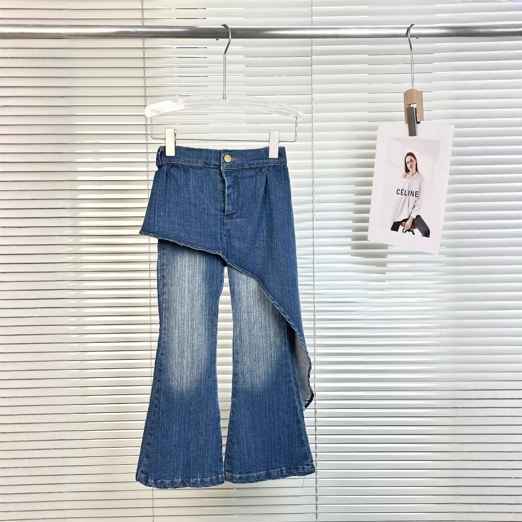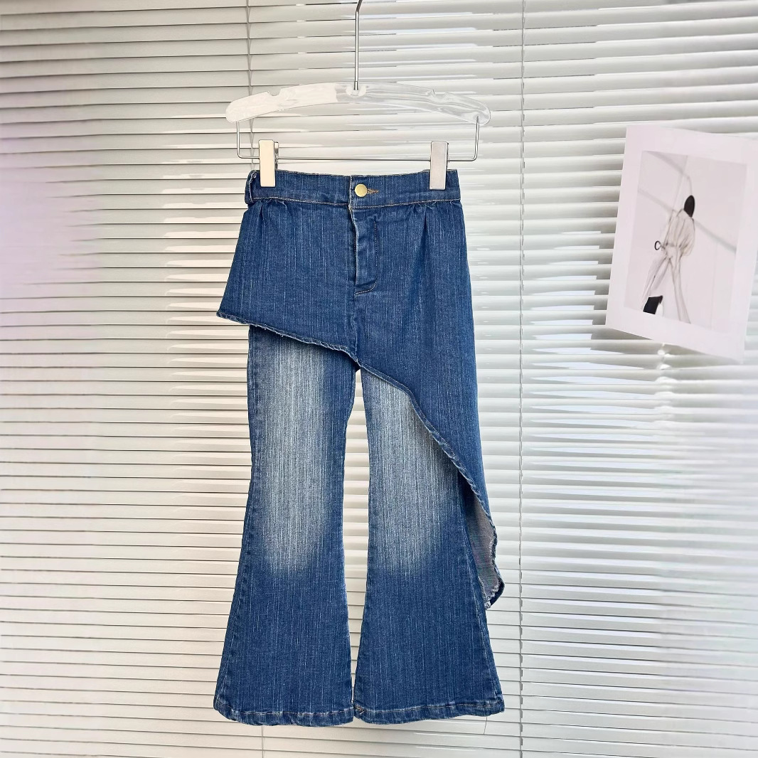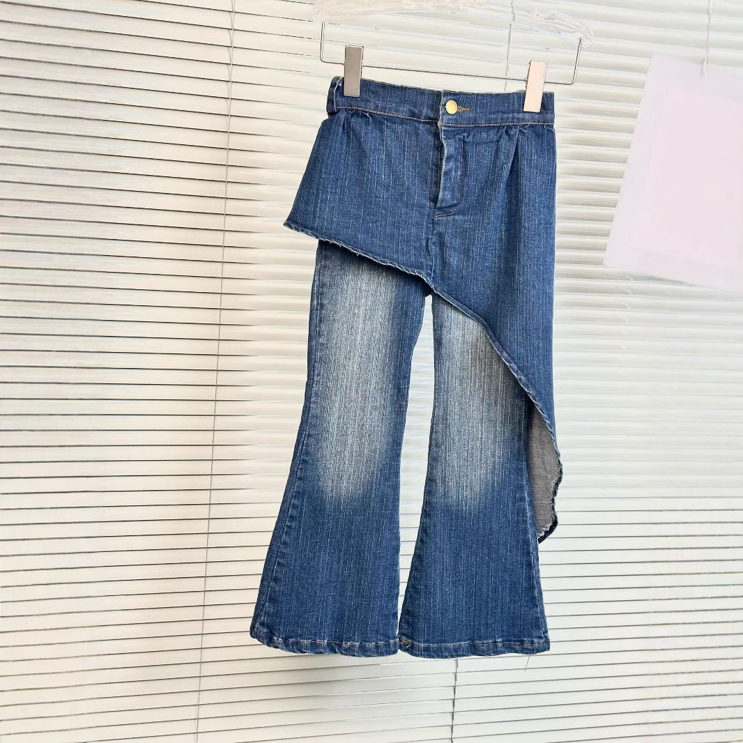 소녀 청바지 2025 봄과 가을 새로운 한국 스타일 불규칙한 스티칭 스트레치 슬림 핏 넓은 다리 플래 팬츠