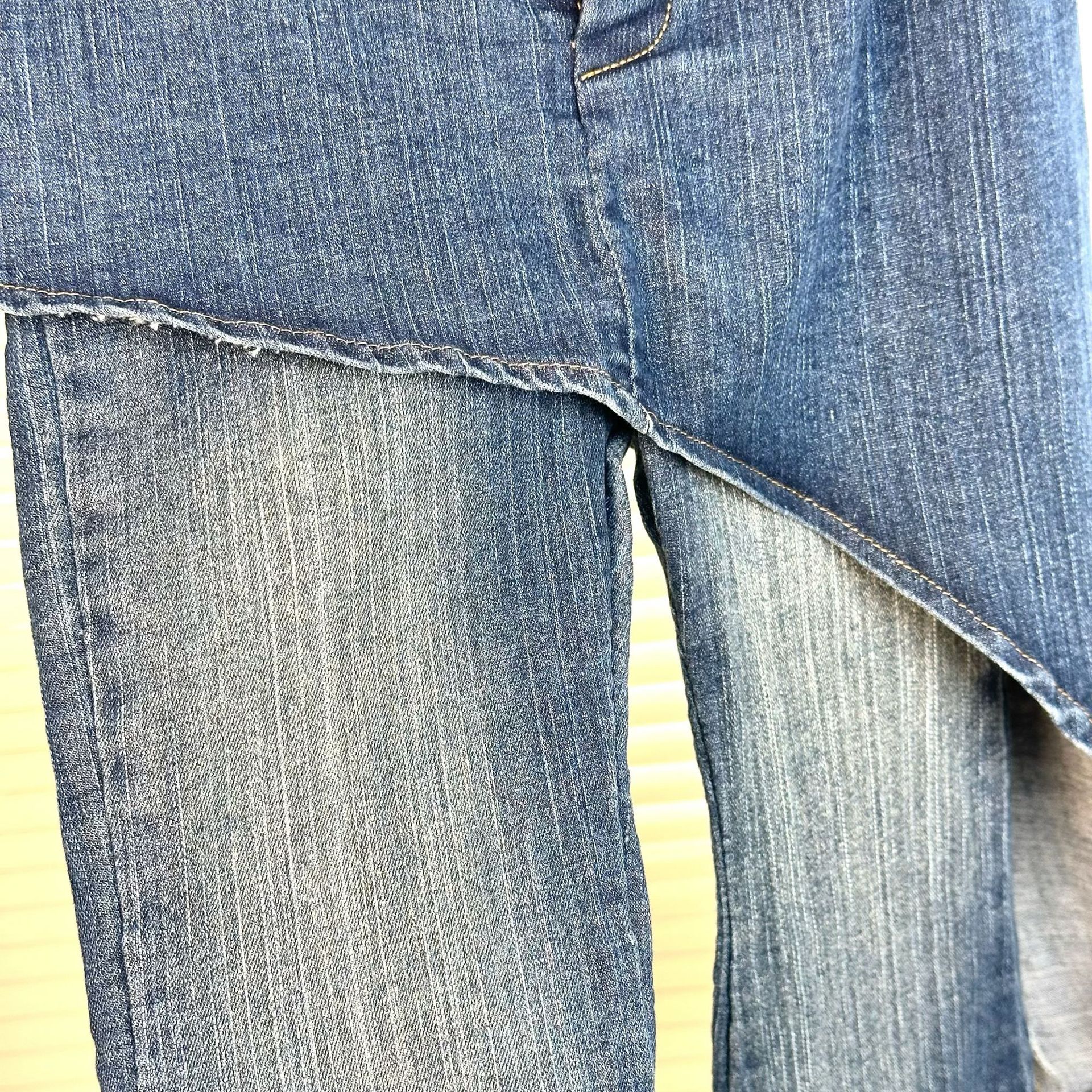소녀 청바지 2025 봄과 가을 새로운 한국 스타일 불규칙한 스티칭 스트레치 슬림 핏 넓은 다리 플래 팬츠스토어 가기