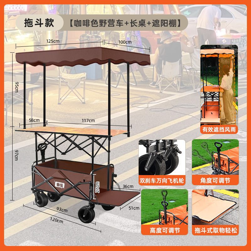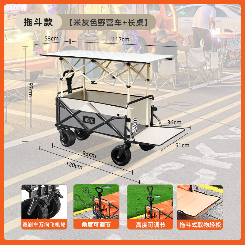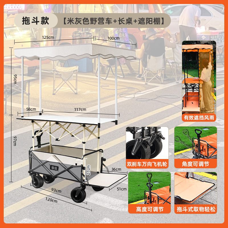 • 성숙한 베이지 [이륜 브레이크] - [차양 확대] 트레일러 트럭 + 리프팅 접이식 테이블 + 의자