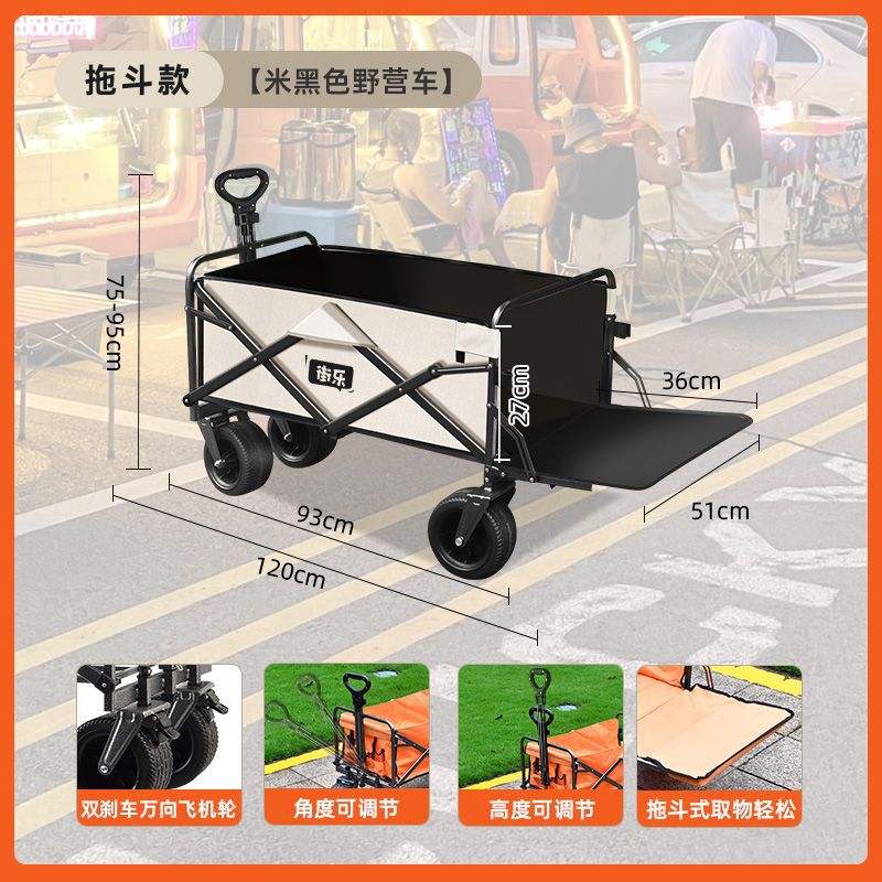 • 진디안 블랙 [이륜 브레이크] - [확장 차양] 트레일러 트럭 + 리프팅 접이식 테이블 + 의자