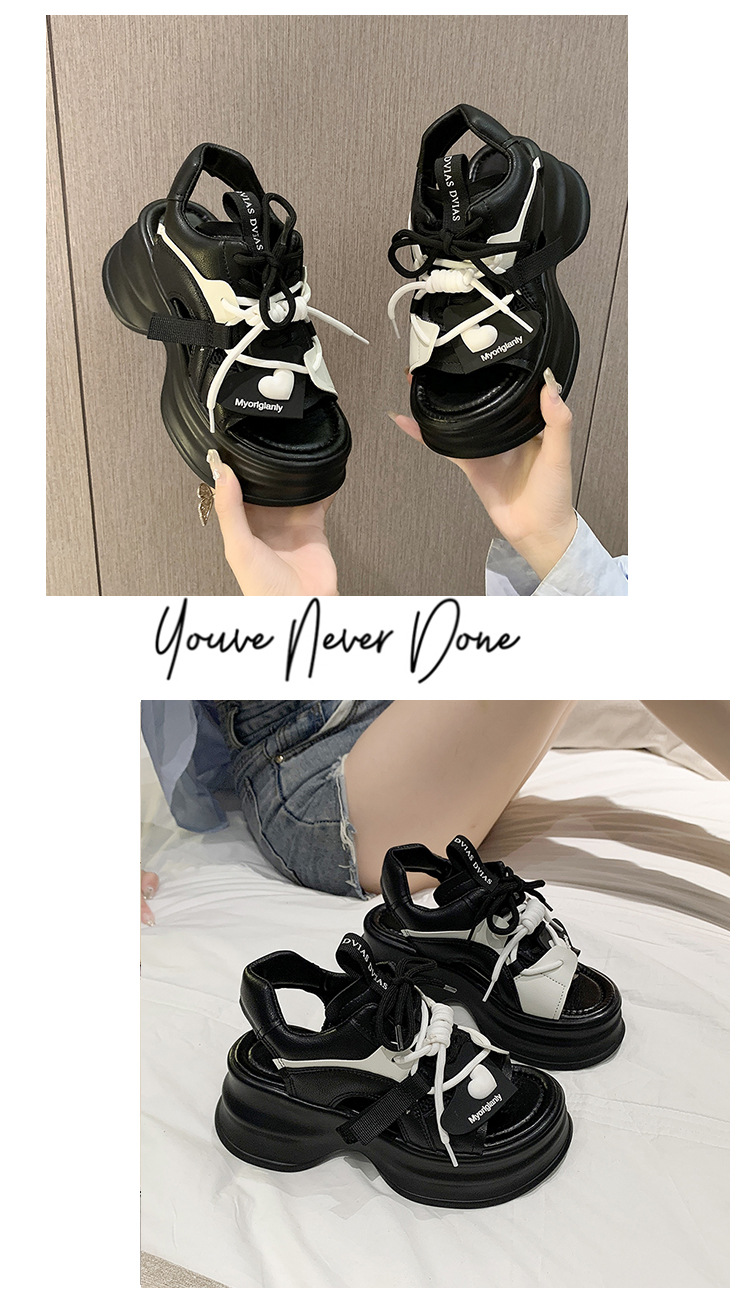 여성용 스커트가 있는 인터넷 연예인 두꺼운 밑창 스포츠 샌들, 작은 사람들을 위한 다용도 신발, 2025년 여름 신상 오픈 토 플랫폼 슈즈스토어 가기
