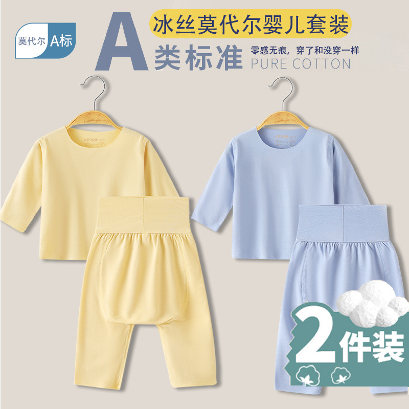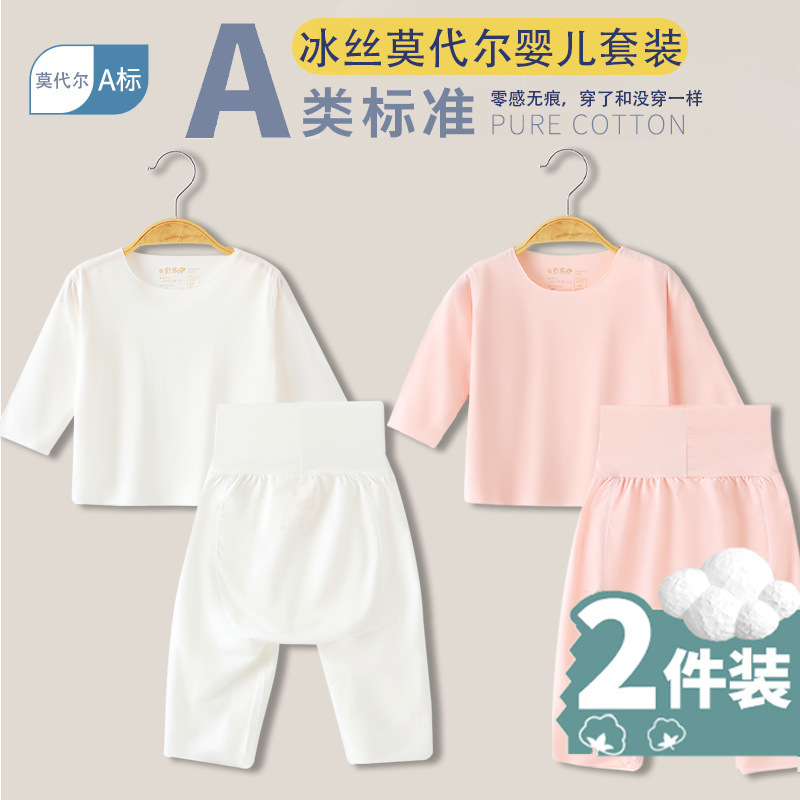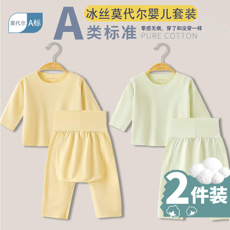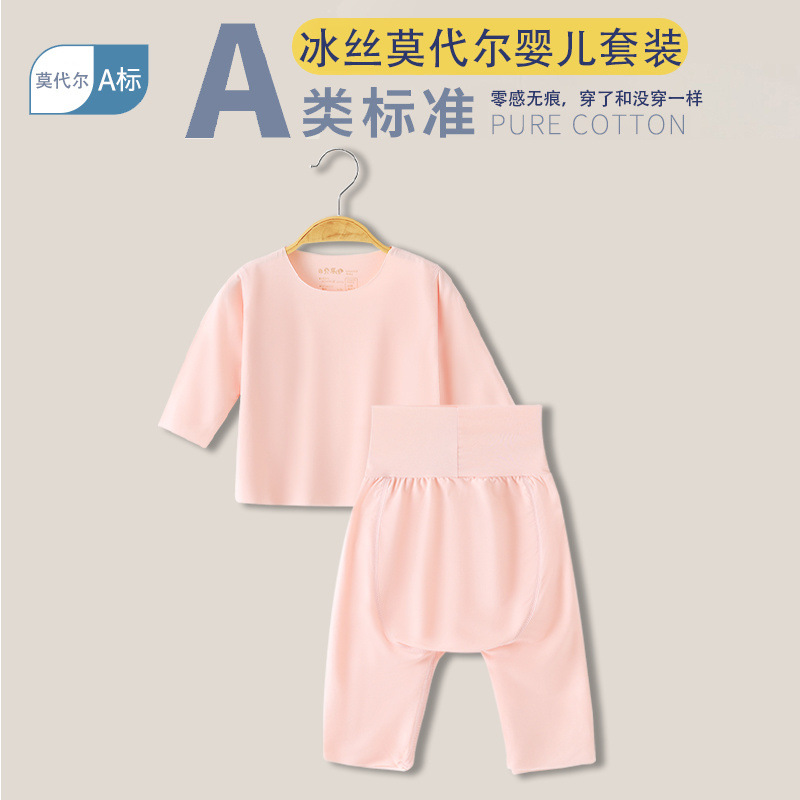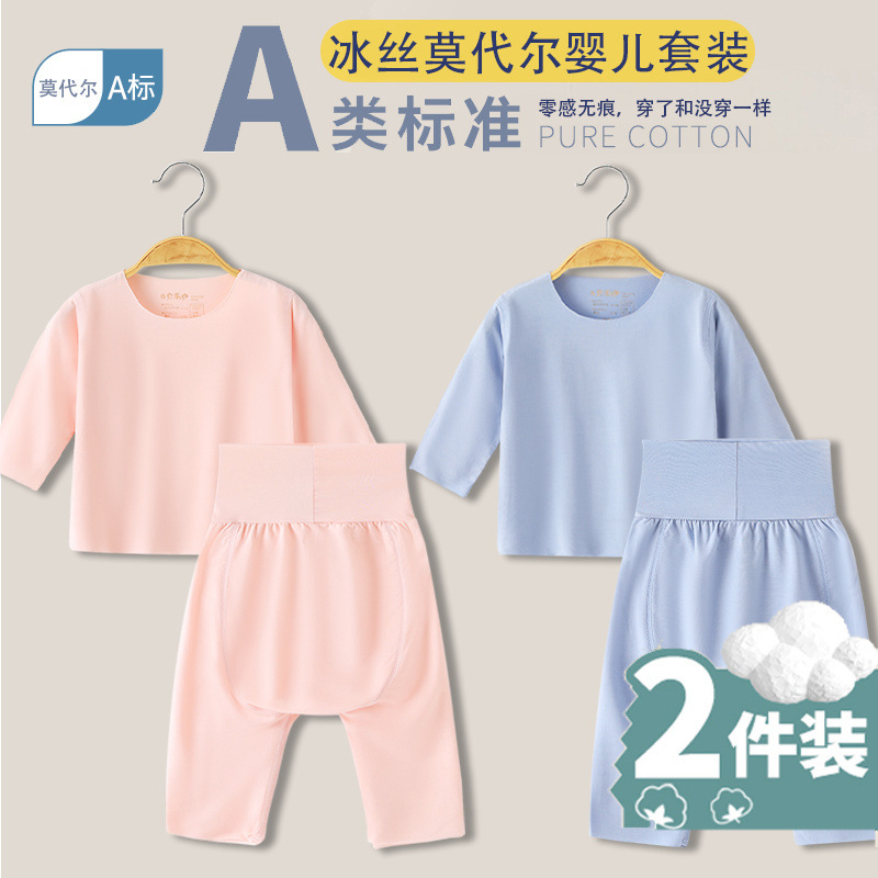 베이비 모달 스플릿 슈트 여름 얇은 어린이 하이 웨이스트 배꼽 보호 에어컨 의류 아기 잠옷 속옷 가정 의류스토어 가기