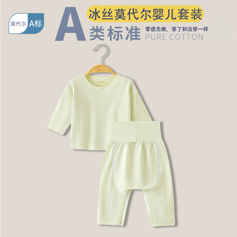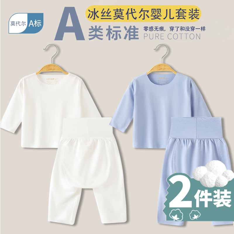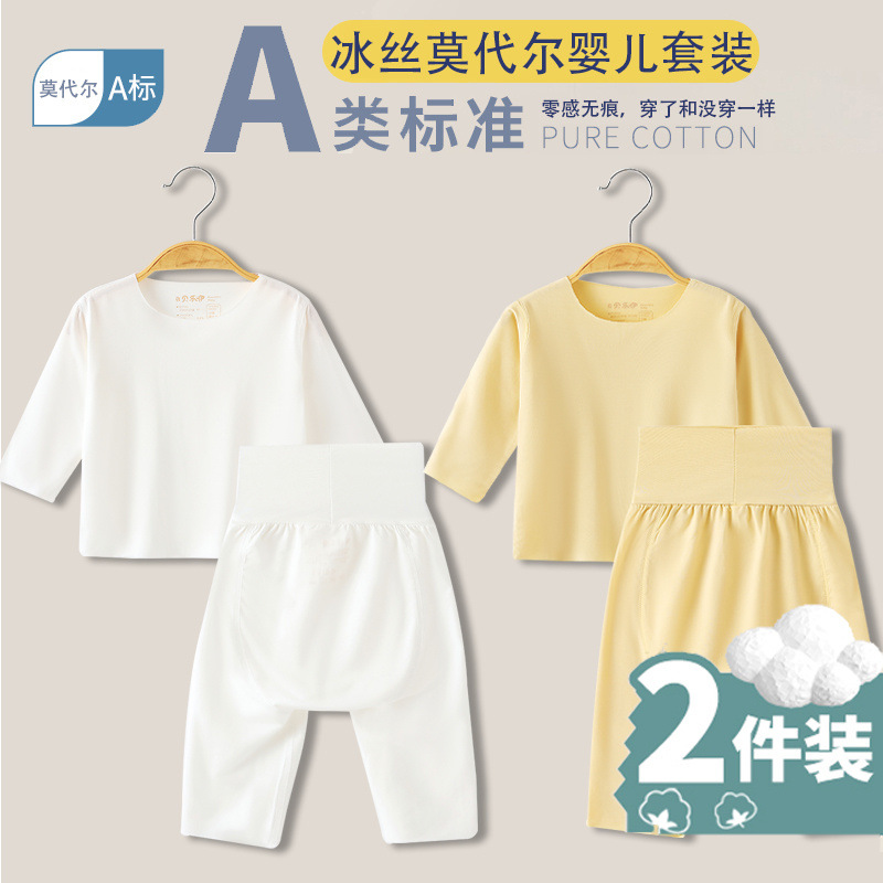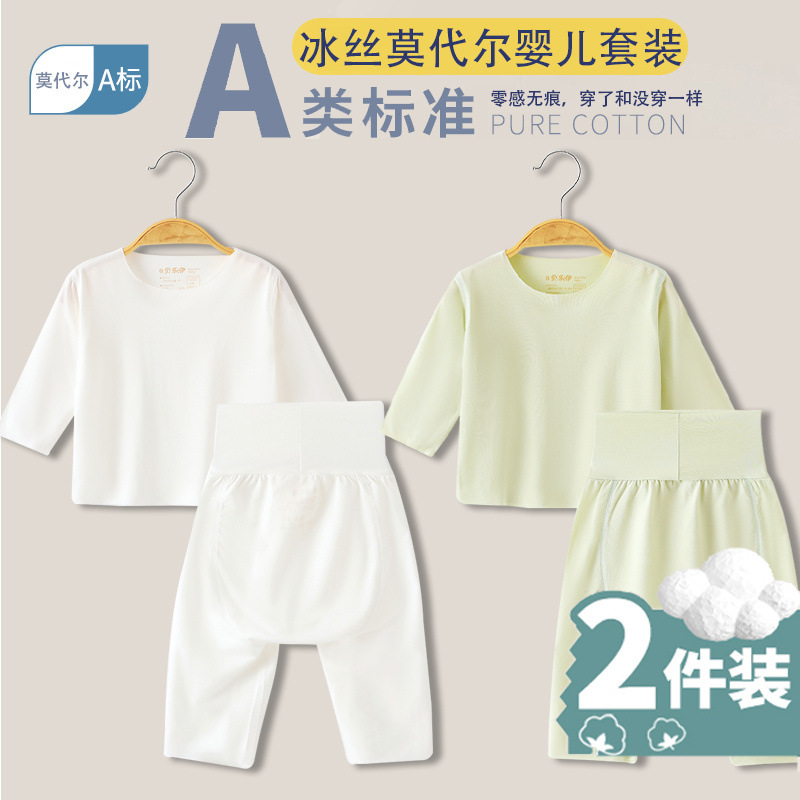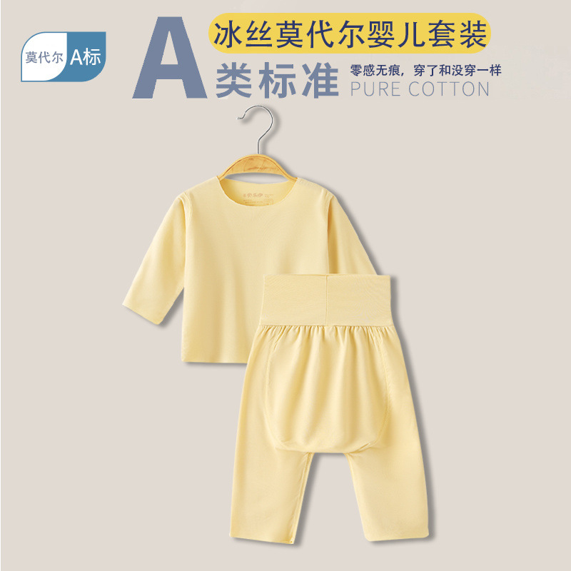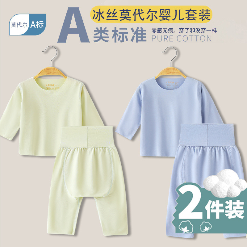 베이비 모달 스플릿 슈트 여름 얇은 어린이 하이 웨이스트 배꼽 보호 에어컨 의류 아기 잠옷 속옷 가정 의류스토어 가기