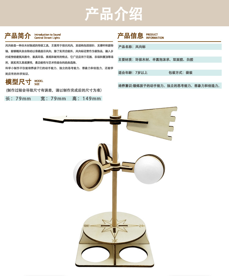 DIY 풍력 풍향계 기술 소규모 생산 과학 실험 장난감 줄기 초등학생 수제 재료 패키지 도매