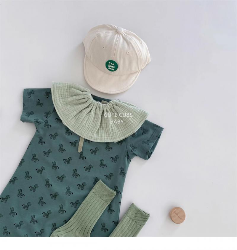 CuteCubs 작은 달 나이 여름 반팔 세트 아기 소년과 소녀 Zebra 만화 짧은 등반 세트 4 코너 Siaman Ha 옷