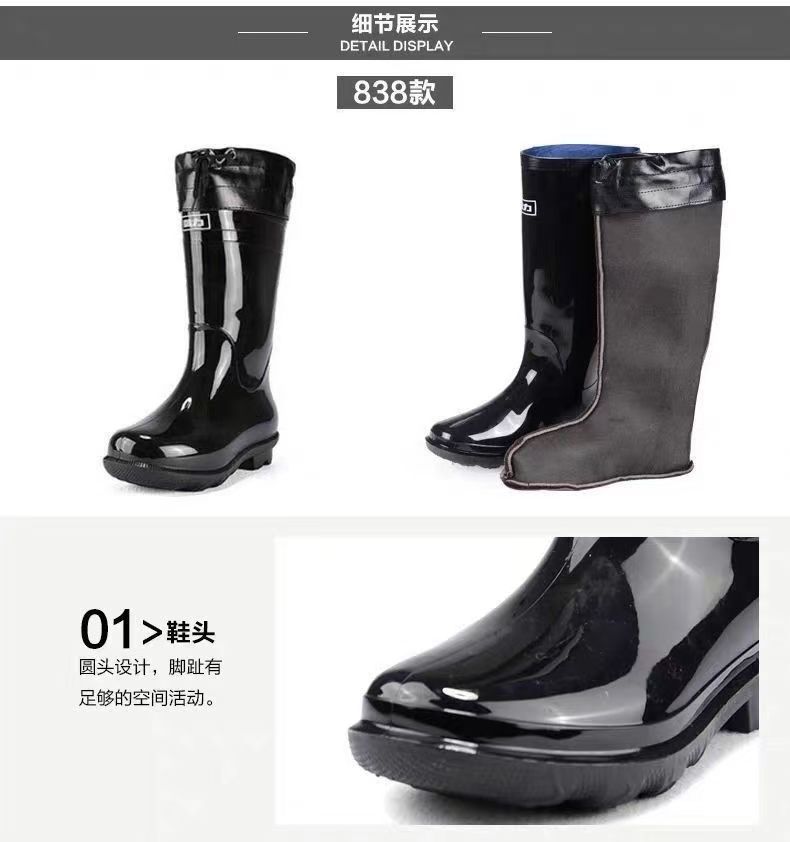 풀백 레인부츠 838 남성용 레인부츠 하이탑 워터슈즈 노동보호 워터부츠 미끄럼 방지, 내마모성, 방수 일체형 레인부츠