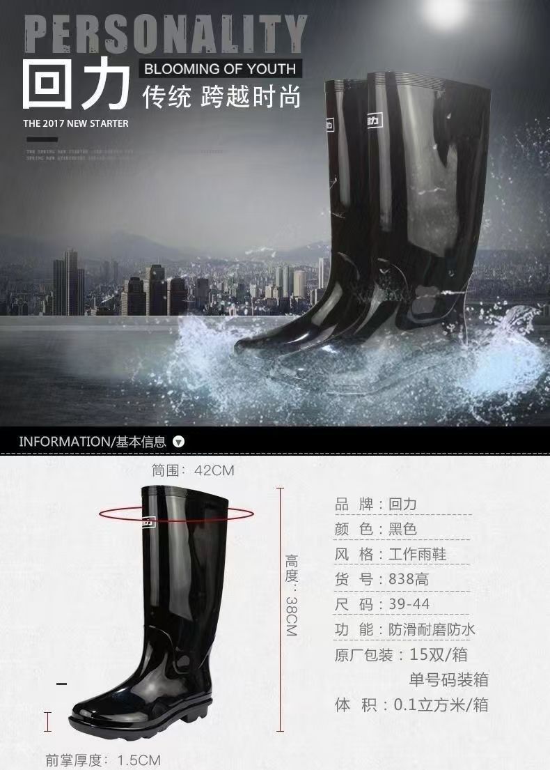 풀백 레인부츠 838 남성용 레인부츠 하이탑 워터슈즈 노동보호 워터부츠 미끄럼 방지, 내마모성, 방수 일체형 레인부츠스토어 가기