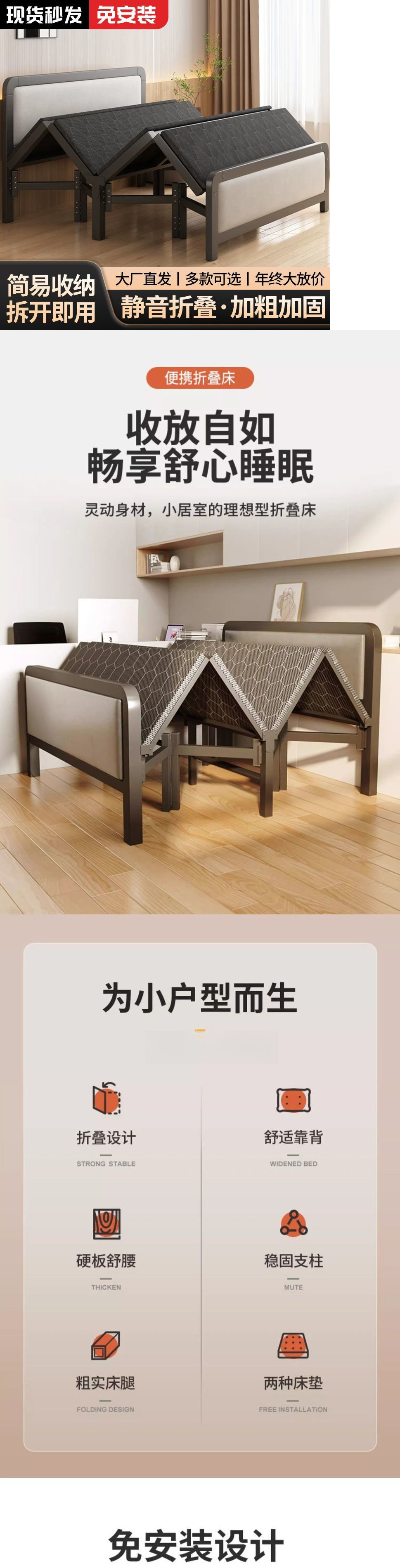 접이식 침대 싱글 침대 1.2m 가정용 성인 간이 침대 더블 침대 1.5m 기숙사 임대실 단단한 침대 철제 침대