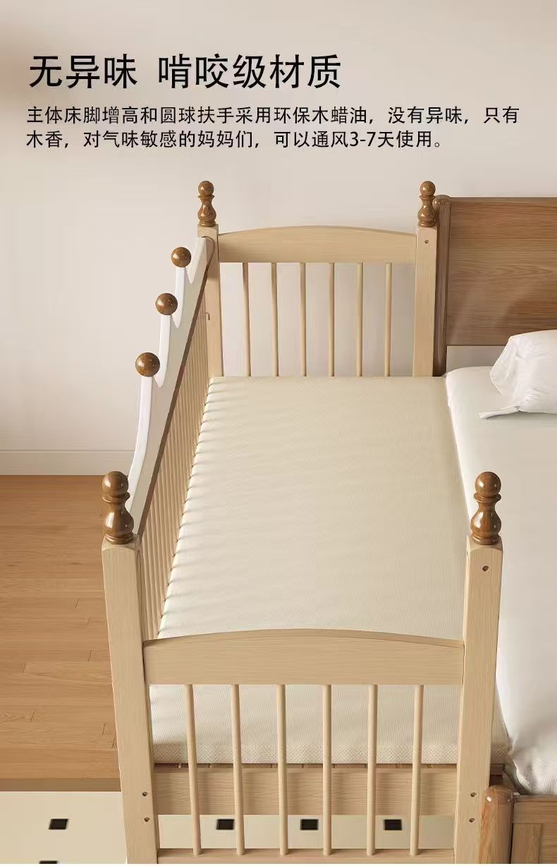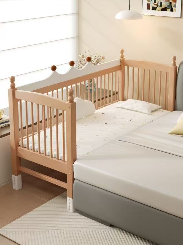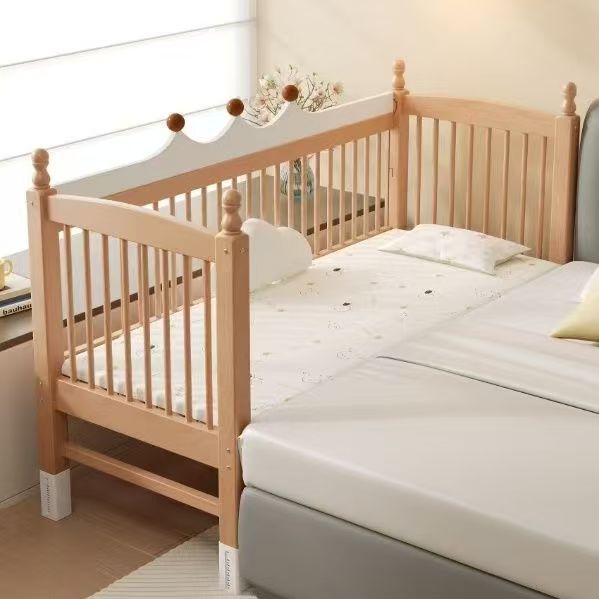너도밤 나무 어린이 접합 큰 침대 높이 조절 가능한 단단한 나무 넓은 침대 아기 및 큰 수면 울타리 리프팅 접합 침대
