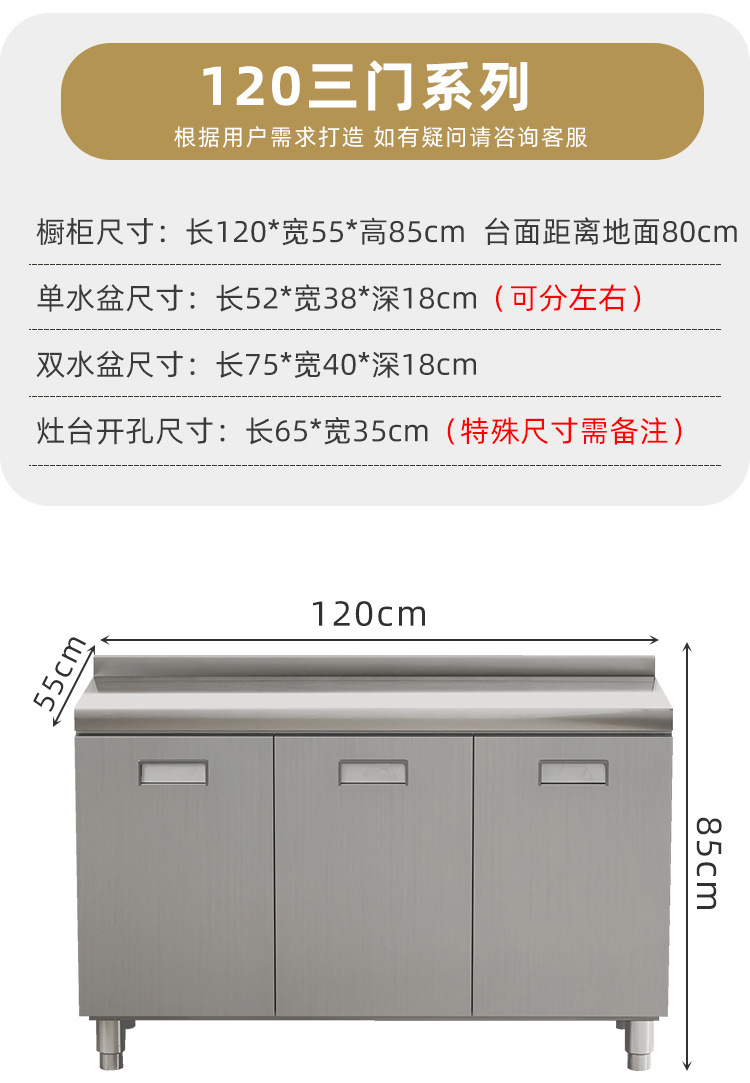 304 통합 스테인레스 스틸 주방 캐비닛 농촌 가정용 로커 찬장 스토브 캐비닛 물 캐비닛 통합 성형 공장스토어 가기
