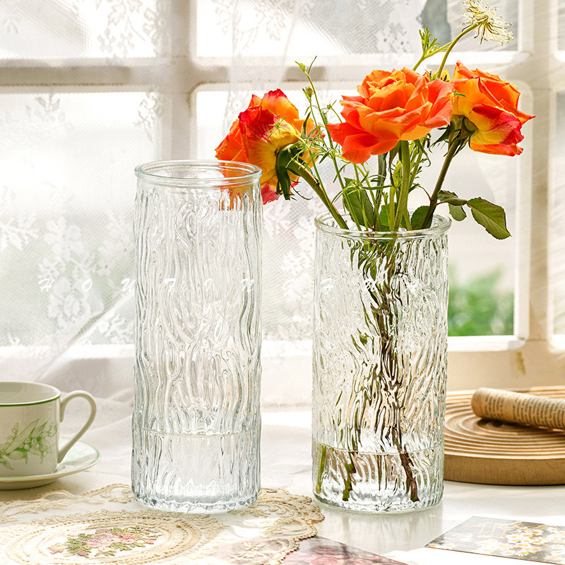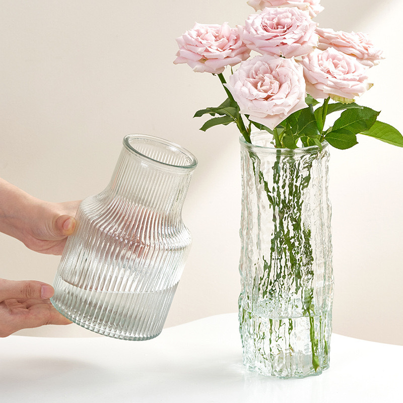 [복지] 유리 꽃병 투명 식물 꽃병 수경 용기 거실 장식 나무 껍질 장식 꽃병