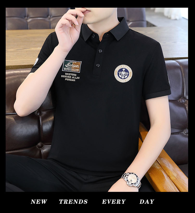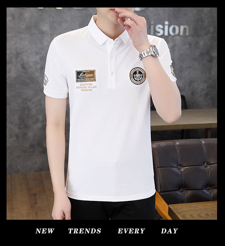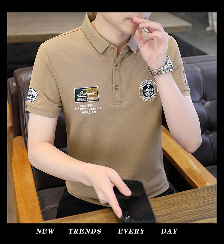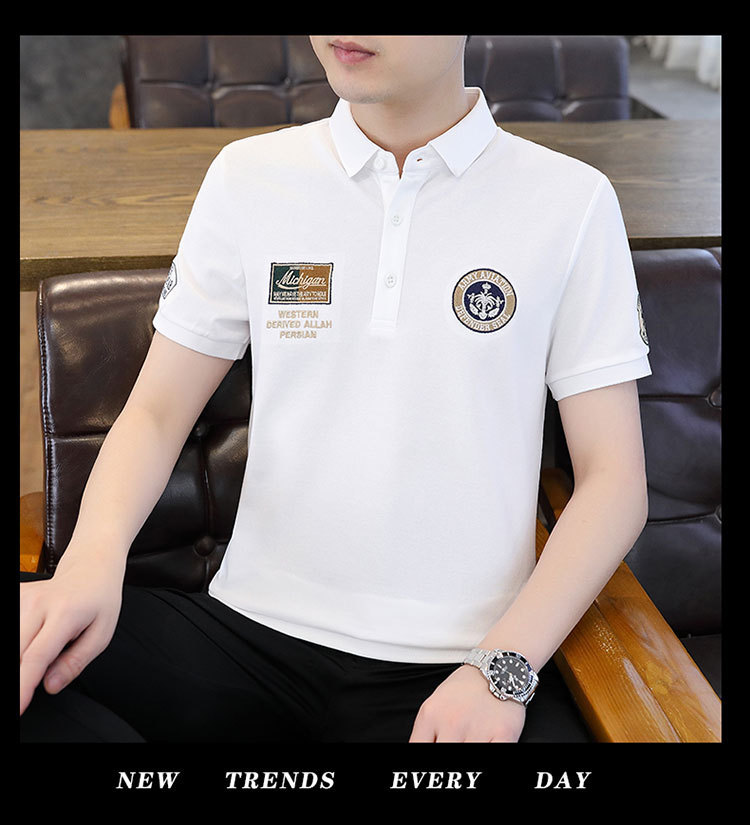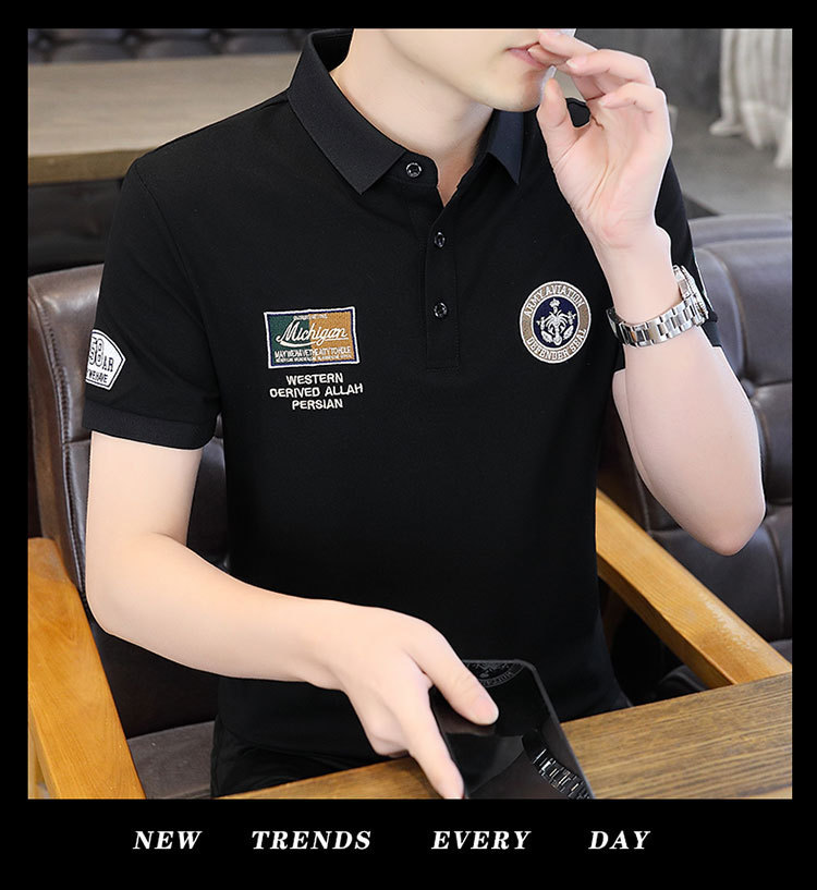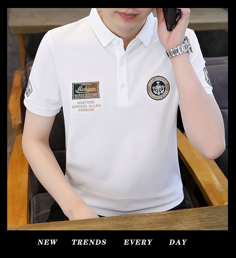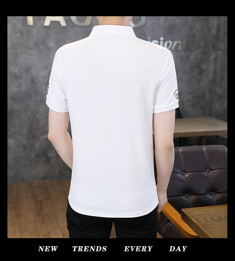 2025 유행 남성 유행 캐주얼 여름 반팔 티셔츠 남성 슬림 핏 엘 폴로 한국 스타일 트렌디 탑 24050