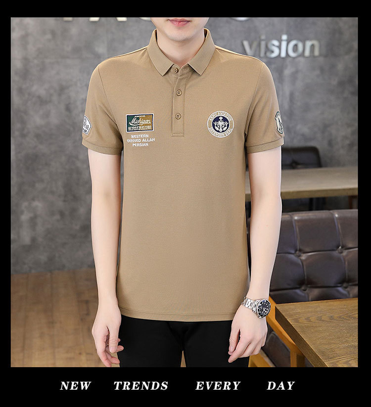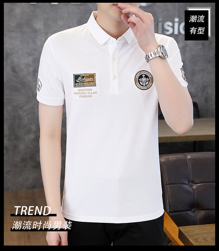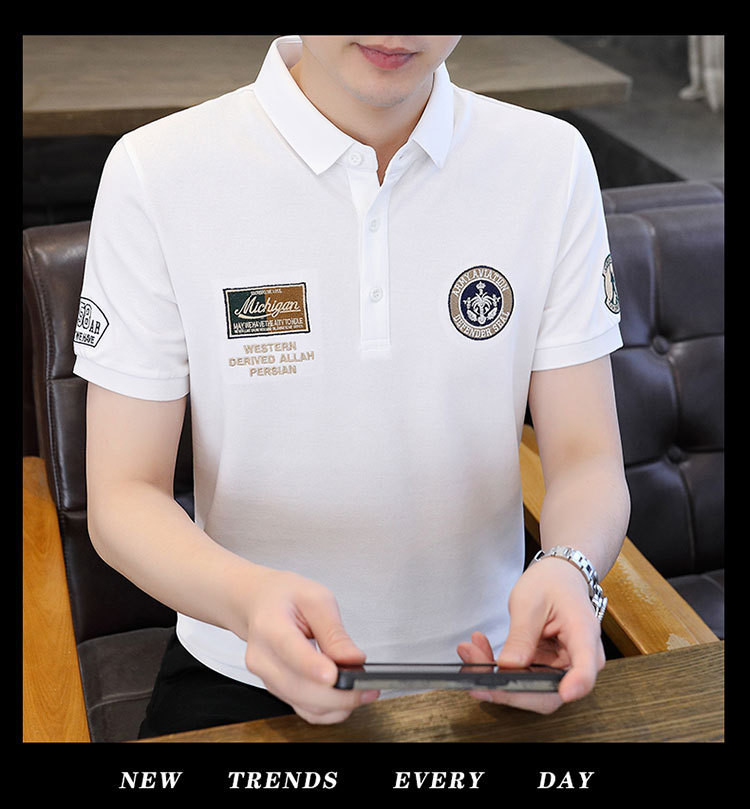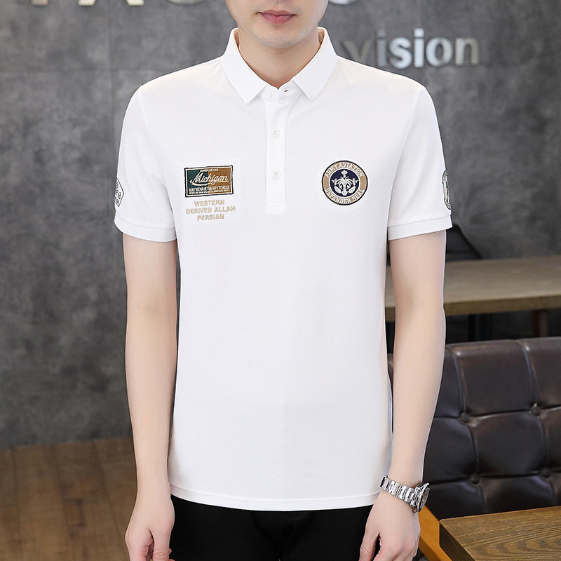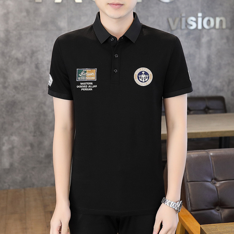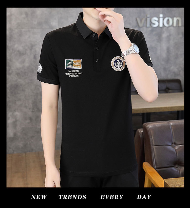 2025 유행 남성 유행 캐주얼 여름 반팔 티셔츠 남성 슬림 핏 엘 폴로 한국 스타일 트렌디 탑 24050