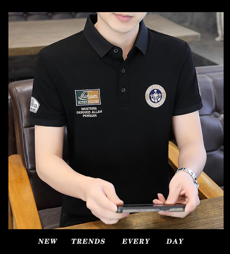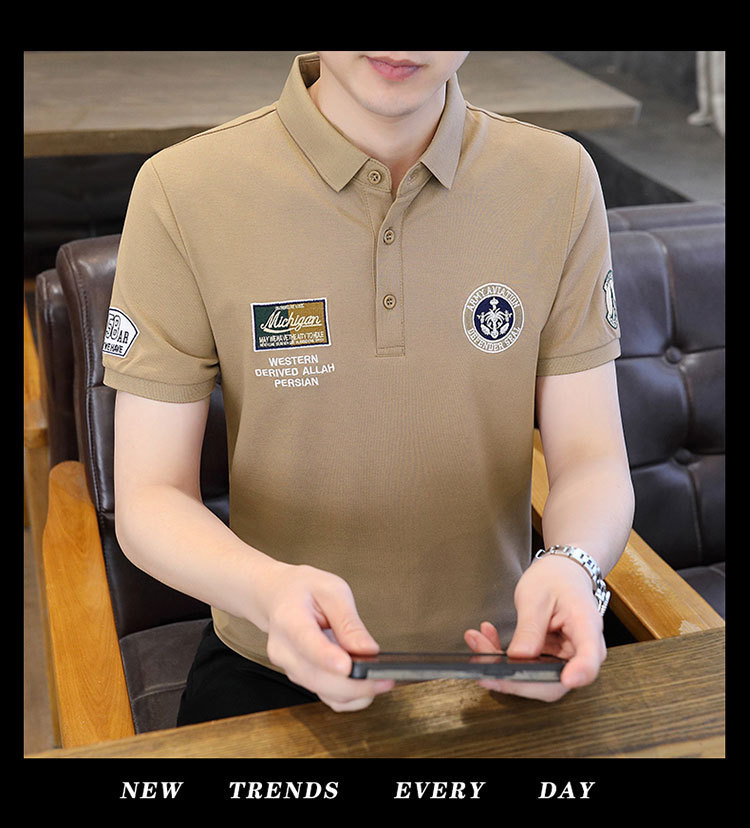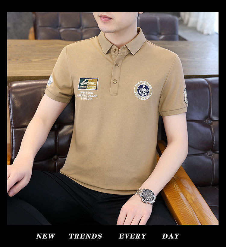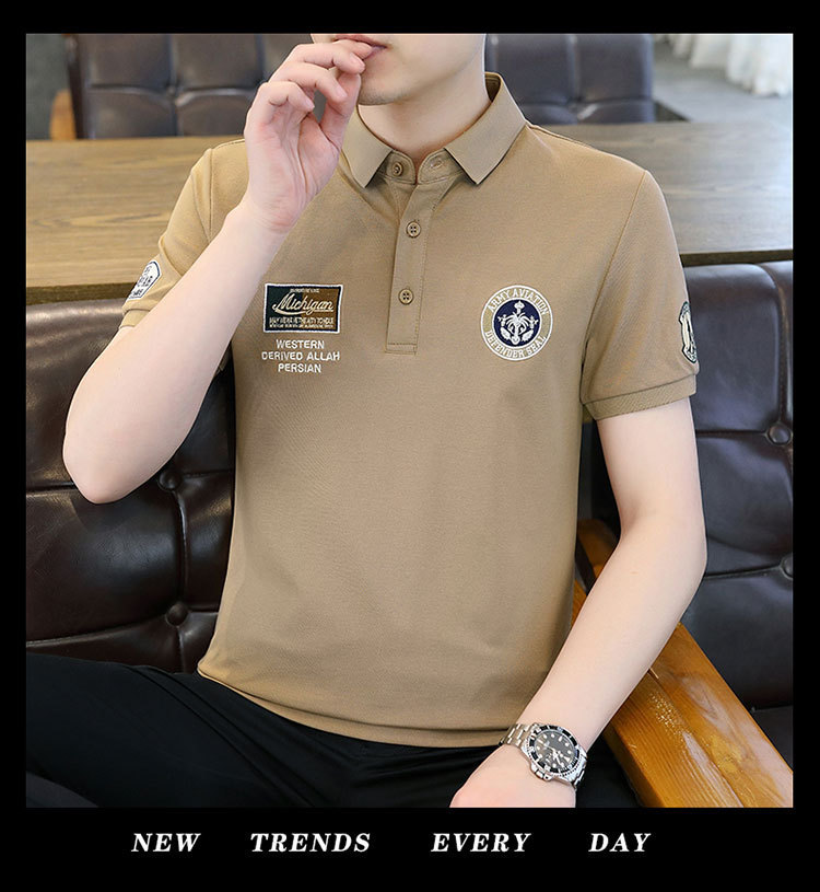 2025 유행 남성 유행 캐주얼 여름 반팔 티셔츠 남성 슬림 핏 엘 폴로 한국 스타일 트렌디 탑 24050스토어 가기
