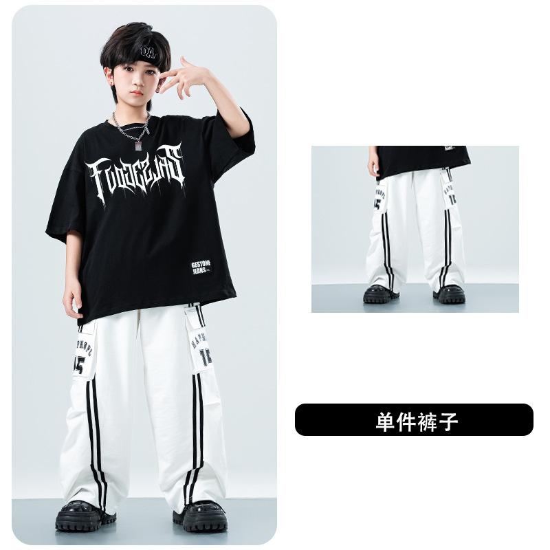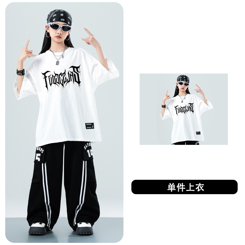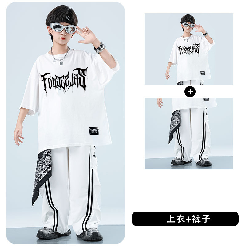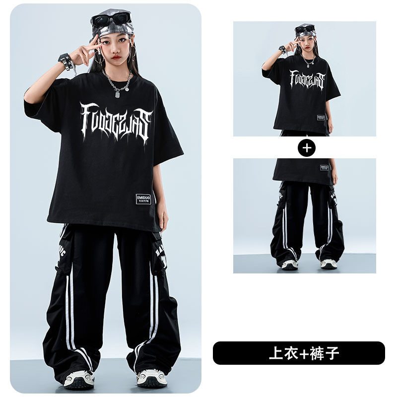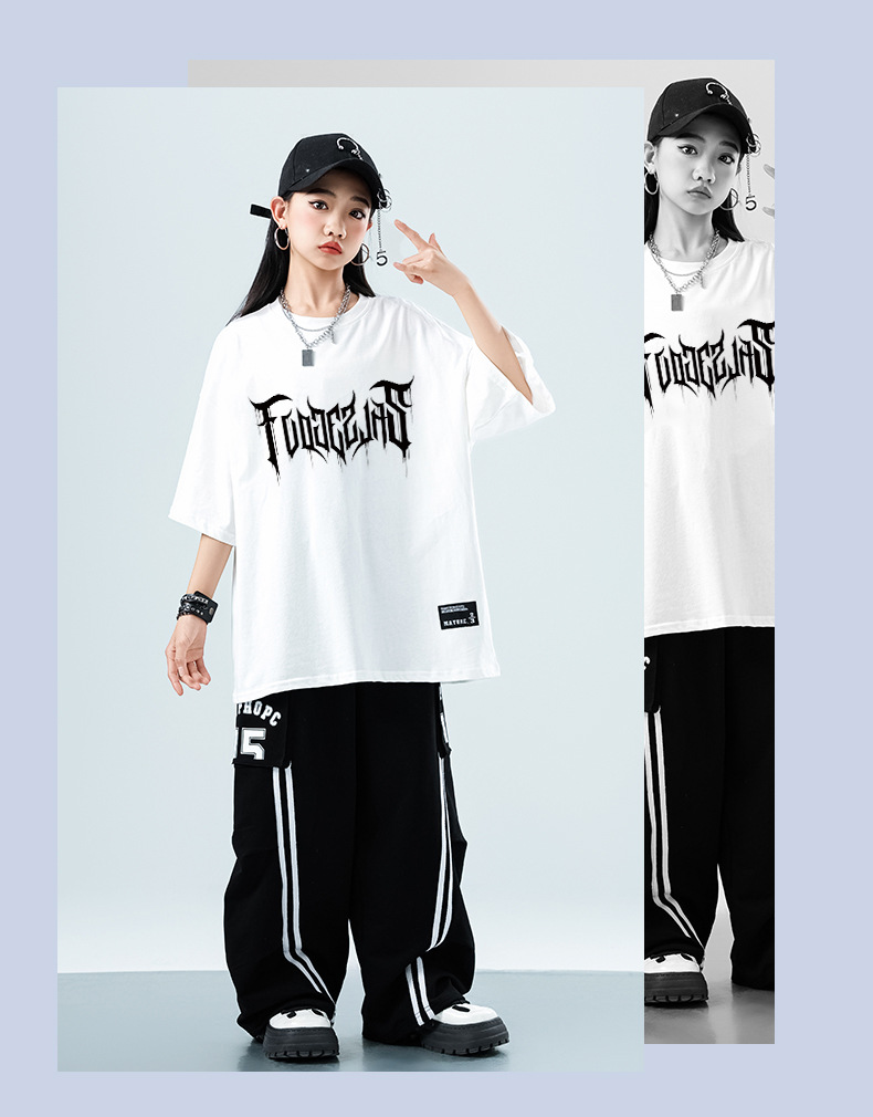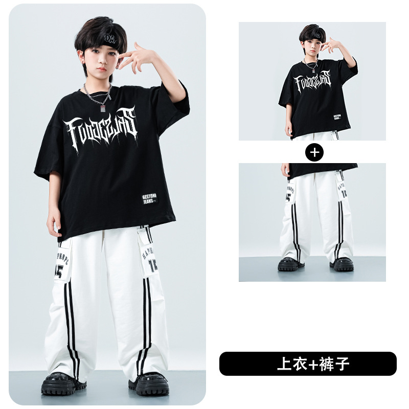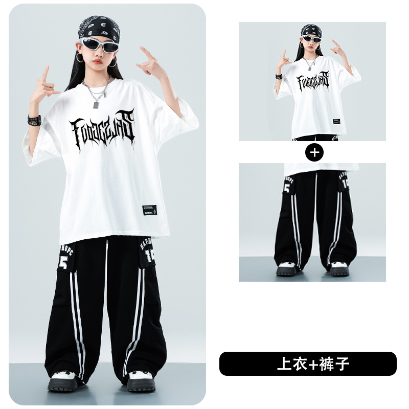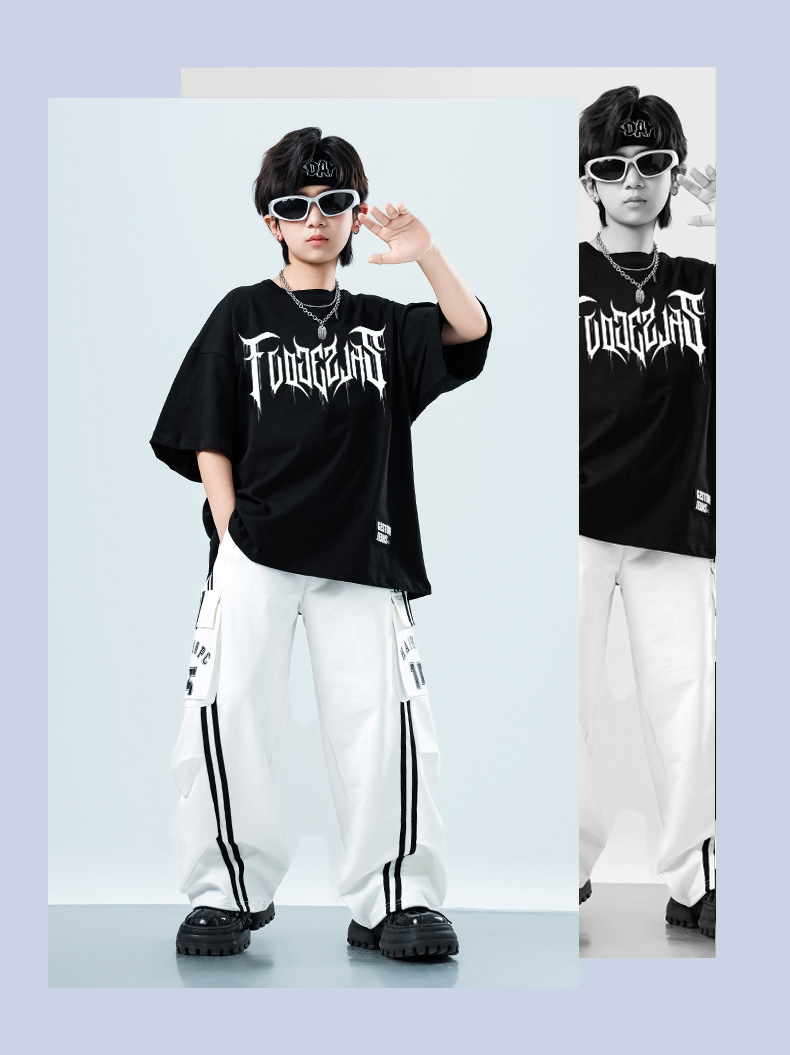 어린이 스트리트 댄스 유행 의류 정장 소년과 소녀 여름 인쇄 반팔 바지 힙합 스트리트 댄스 공연 의류스토어 가기
