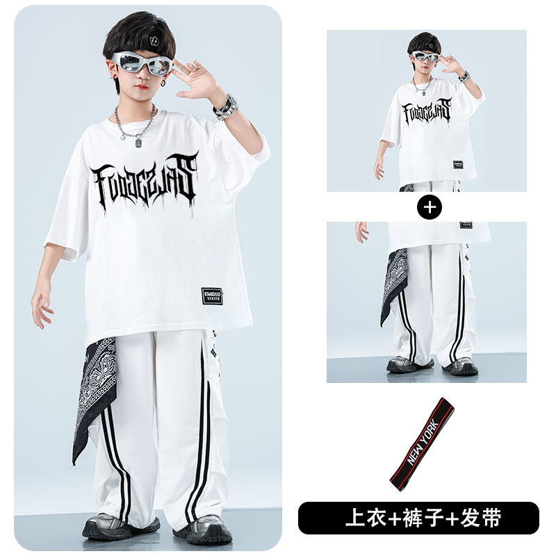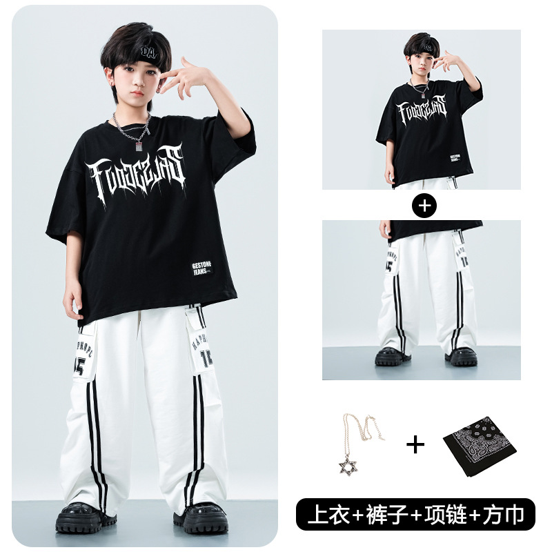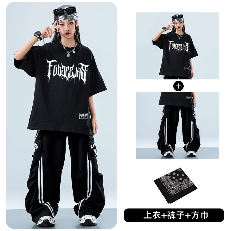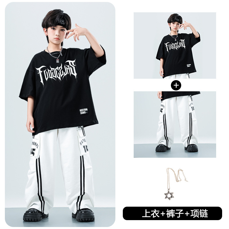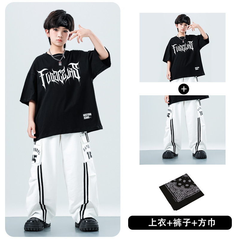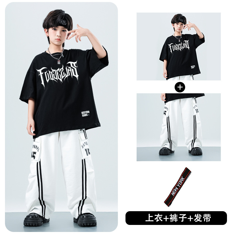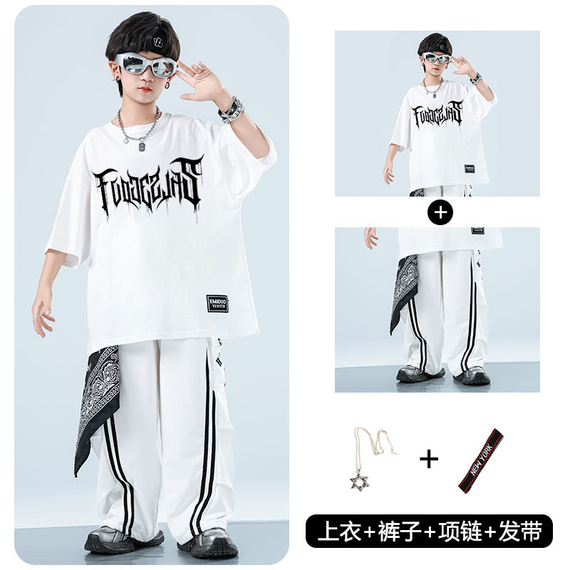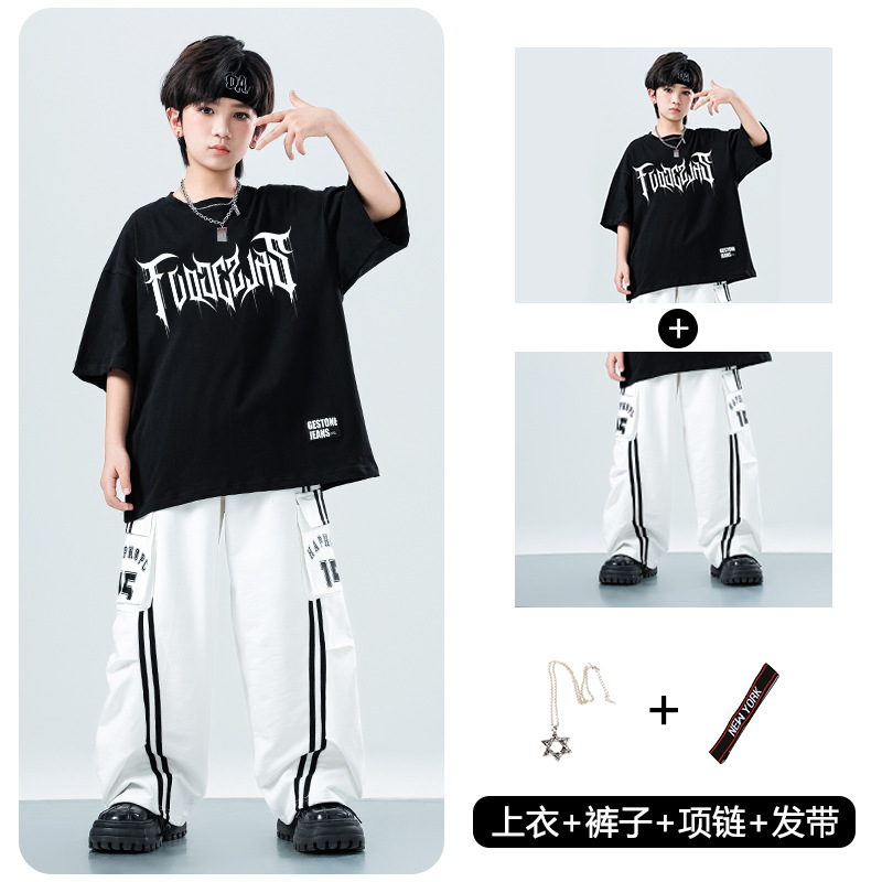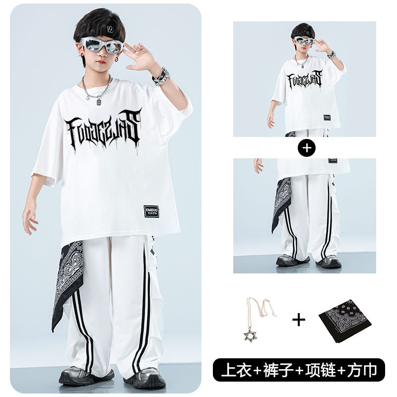 어린이 스트리트 댄스 유행 의류 정장 소년과 소녀 여름 인쇄 반팔 바지 힙합 스트리트 댄스 공연 의류스토어 가기