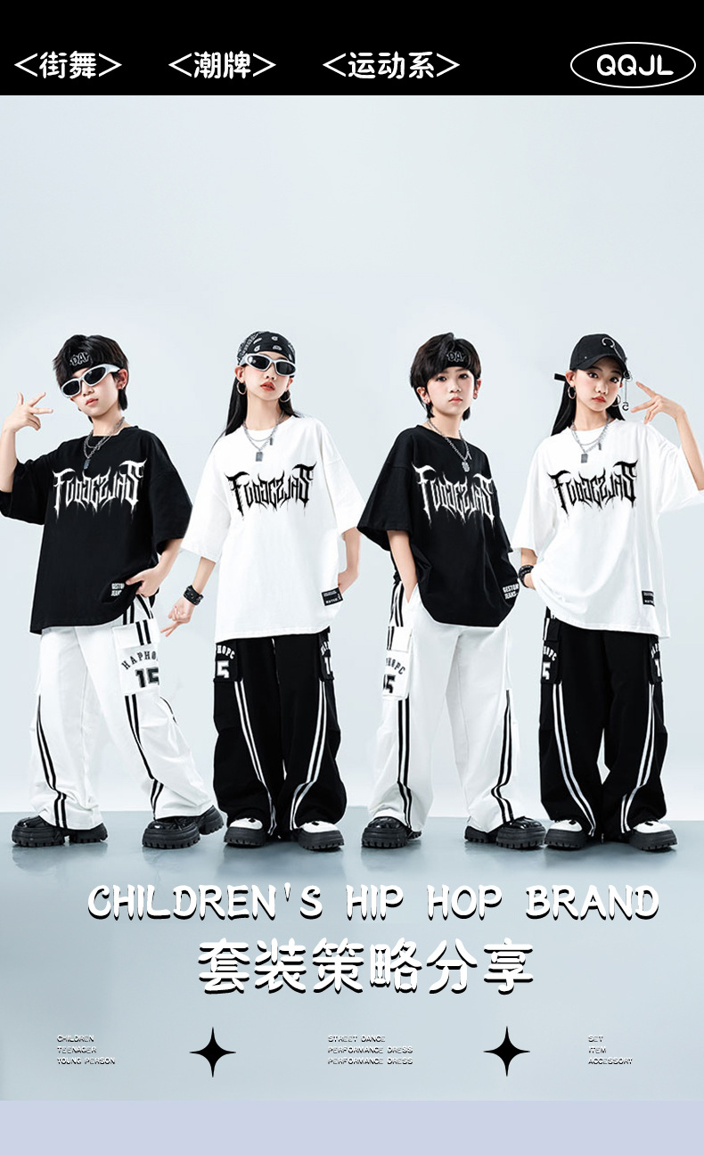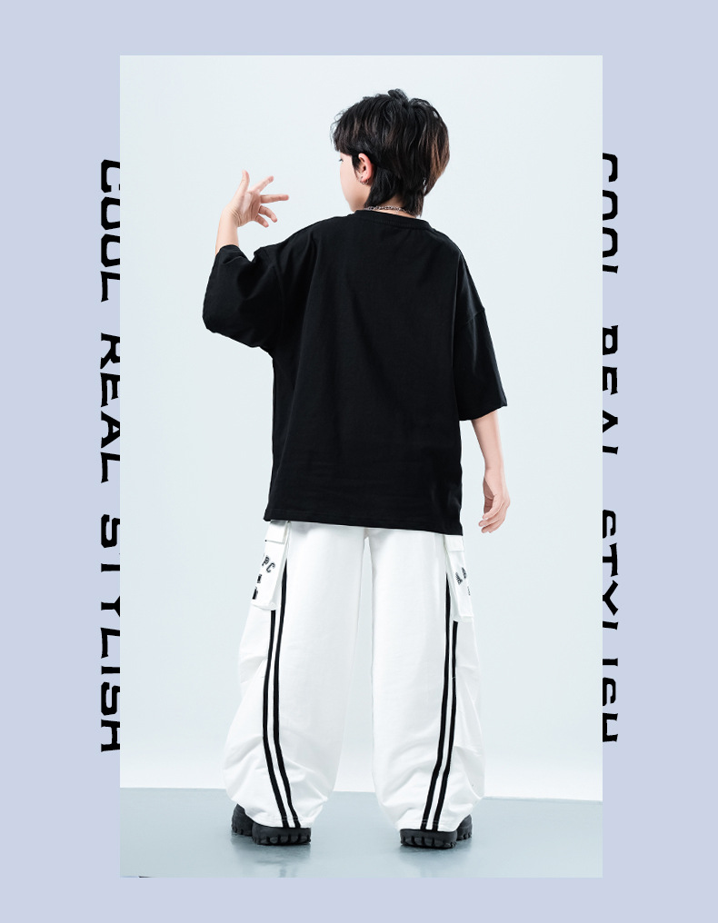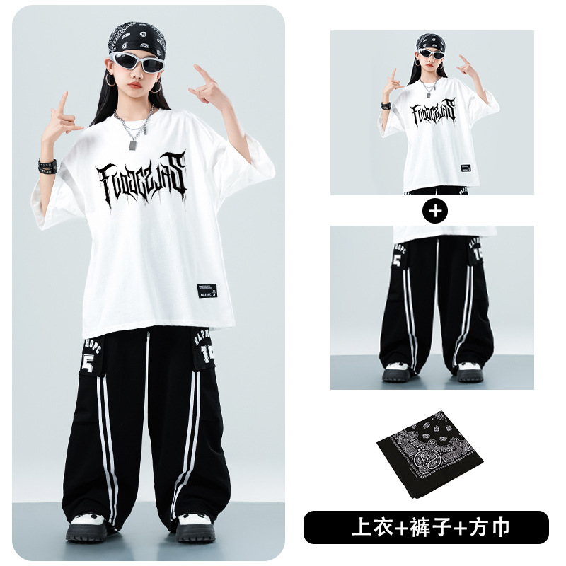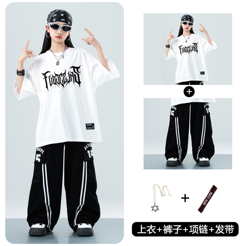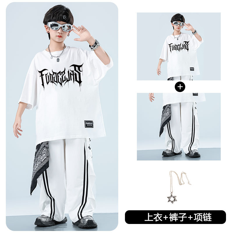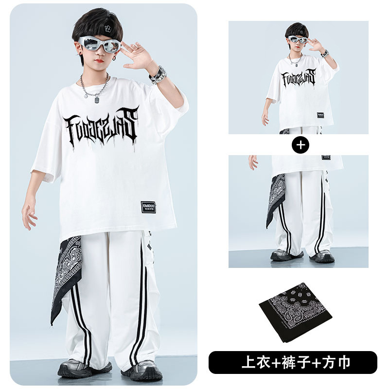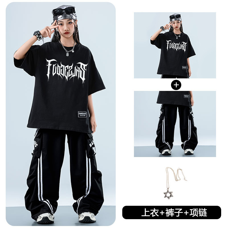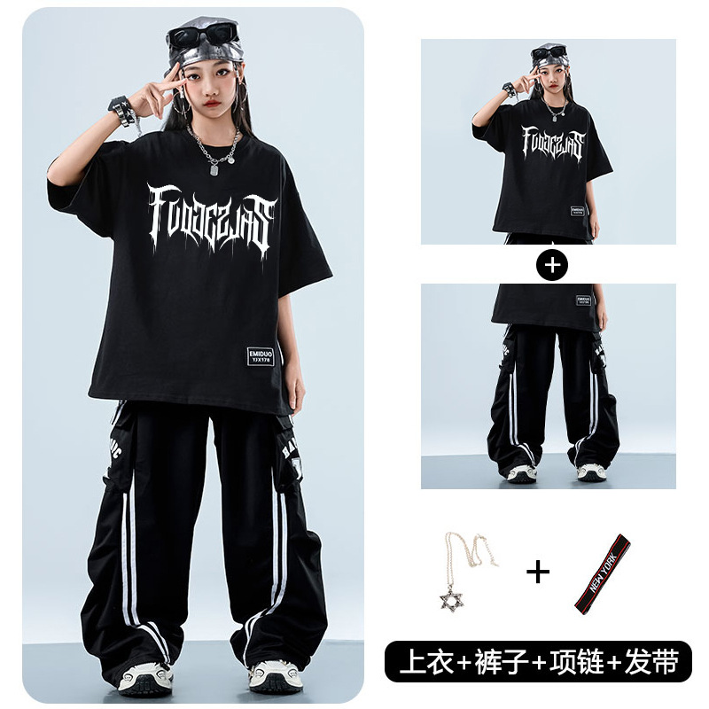 어린이 스트리트 댄스 유행 의류 정장 소년과 소녀 여름 인쇄 반팔 바지 힙합 스트리트 댄스 공연 의류스토어 가기