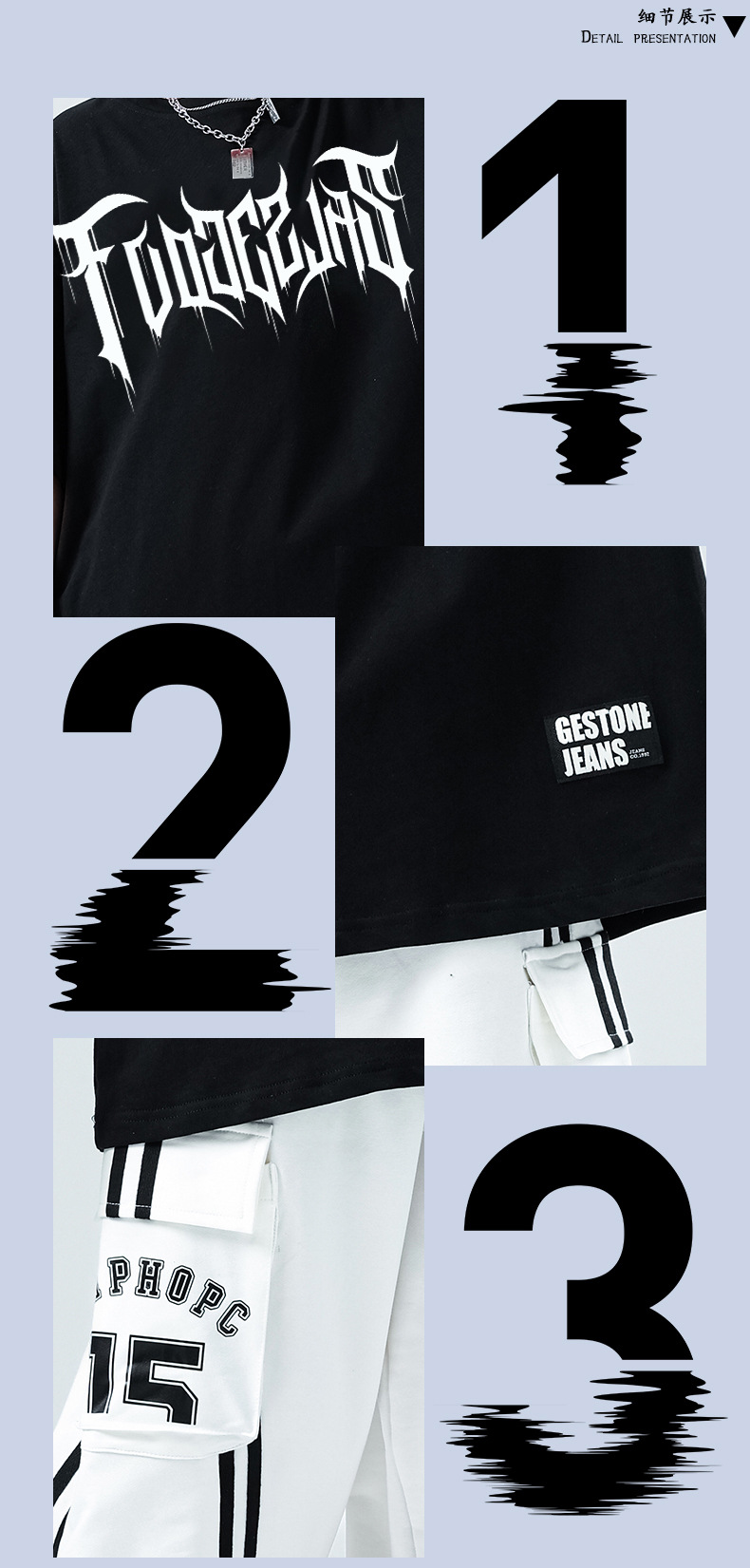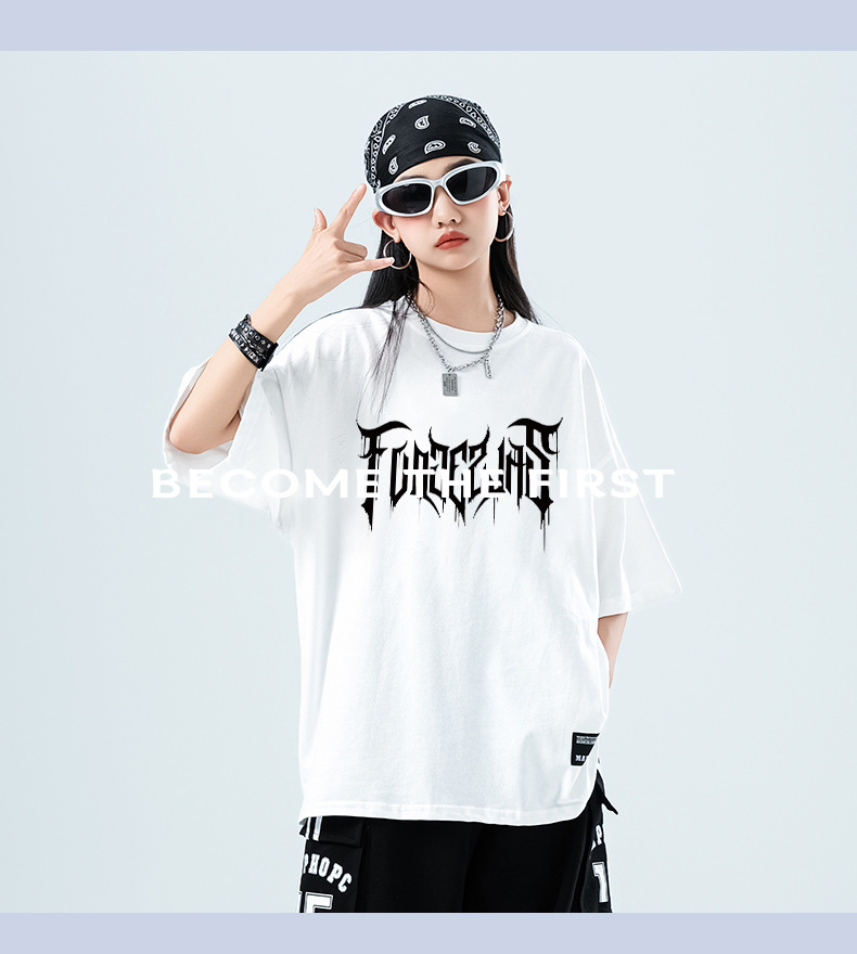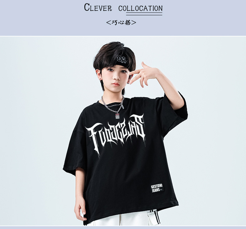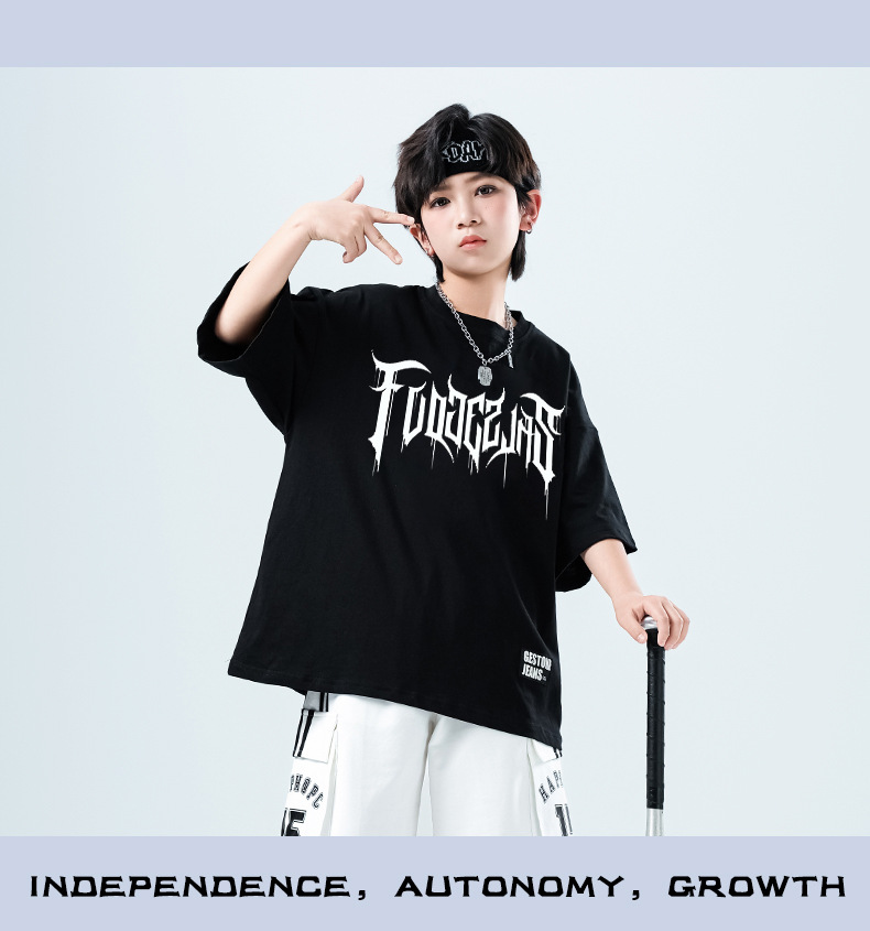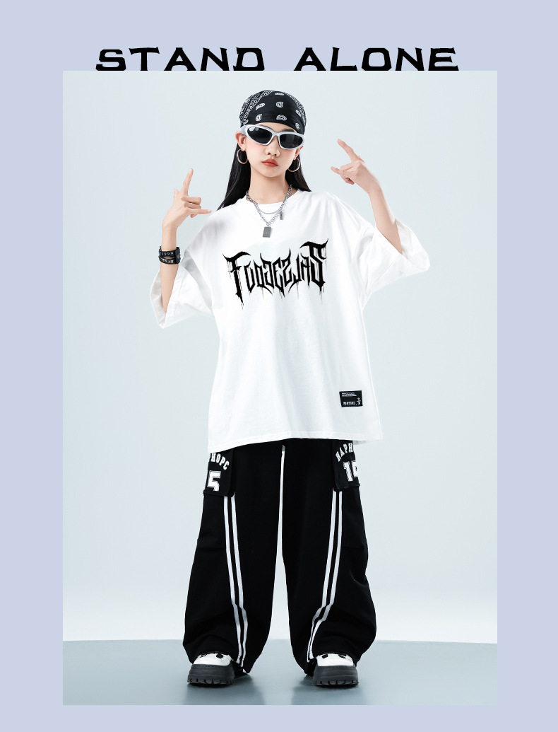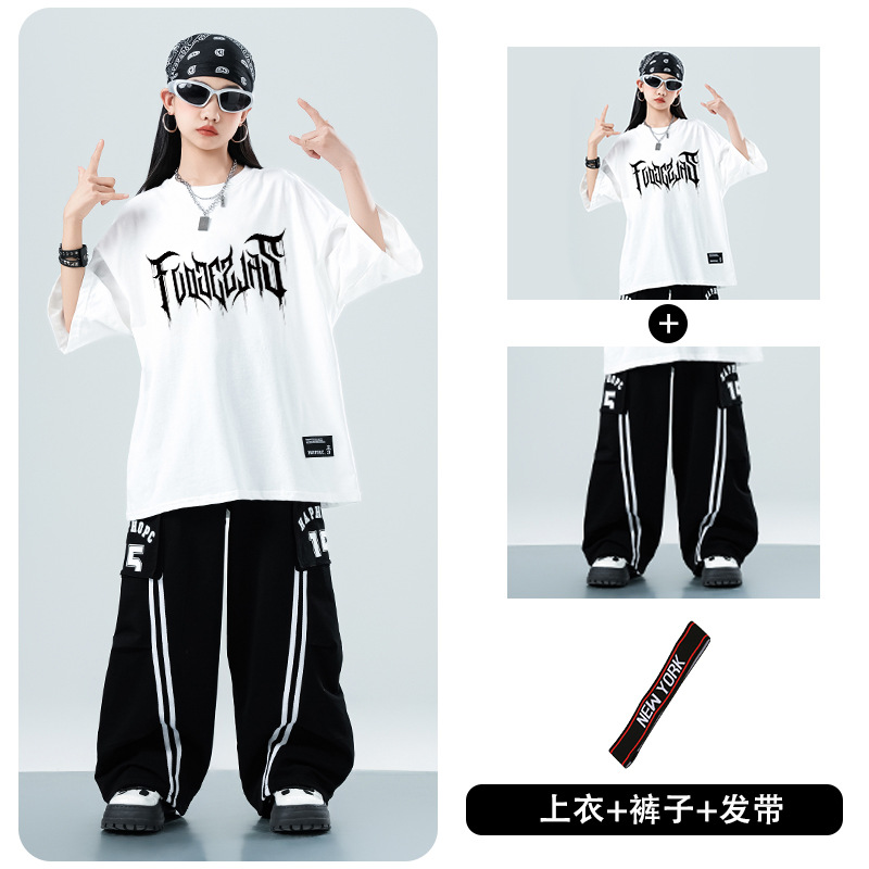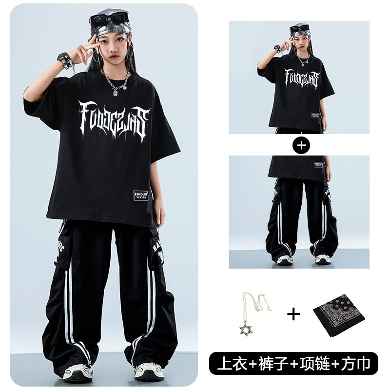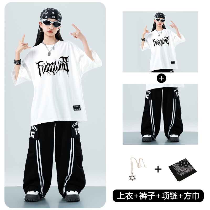 어린이 스트리트 댄스 유행 의류 정장 소년과 소녀 여름 인쇄 반팔 바지 힙합 스트리트 댄스 공연 의류스토어 가기