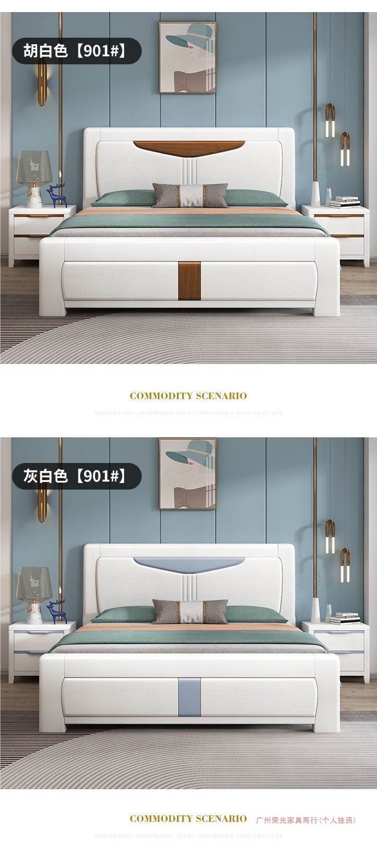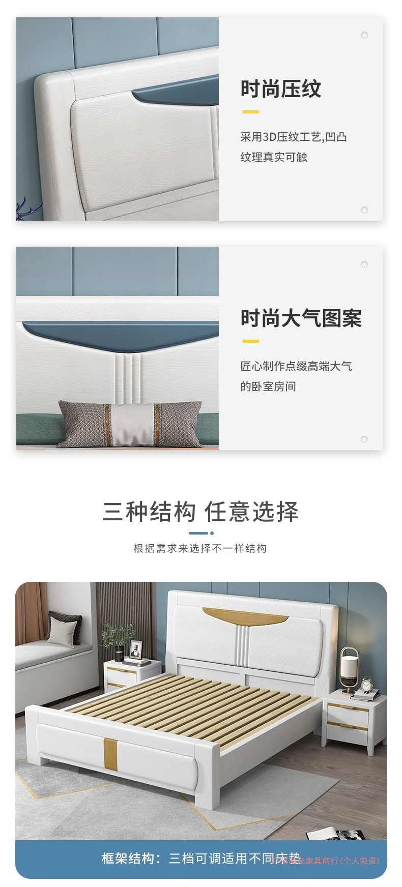 중국 스타일 단단한 나무 침대 1.8m 더블 침대 흰색 양각 오크 간단한 빅 웨딩 1.2m 현대 마스터 침실 내구성