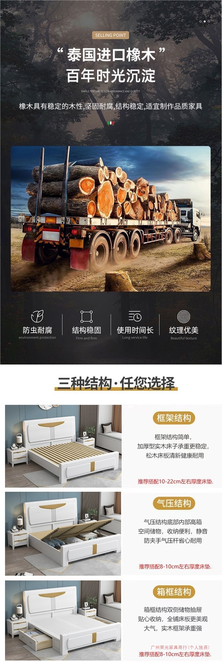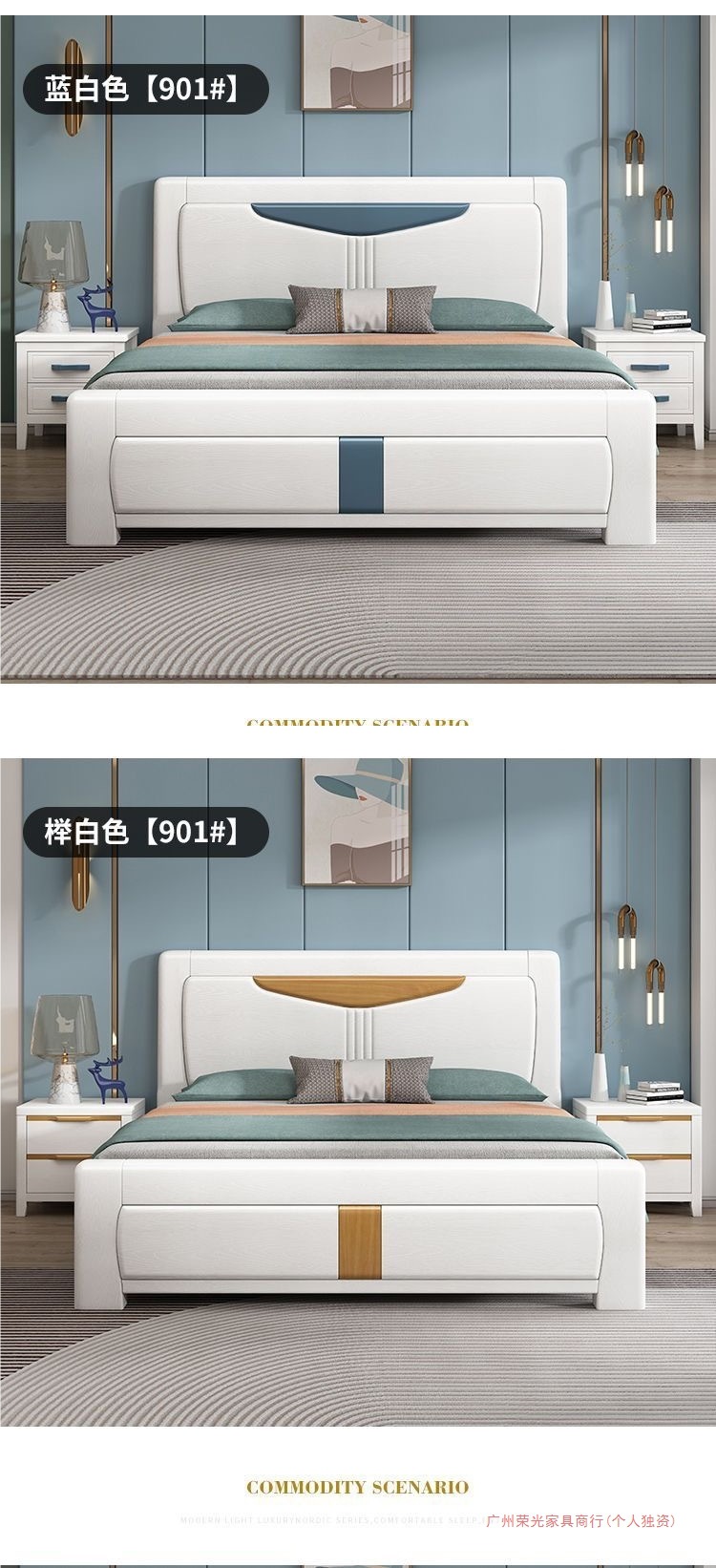 중국 스타일 단단한 나무 침대 1.8m 더블 침대 흰색 양각 오크 간단한 빅 웨딩 1.2m 현대 마스터 침실 내구성스토어 가기