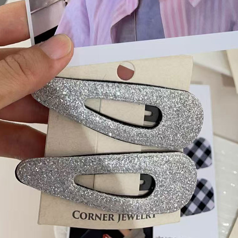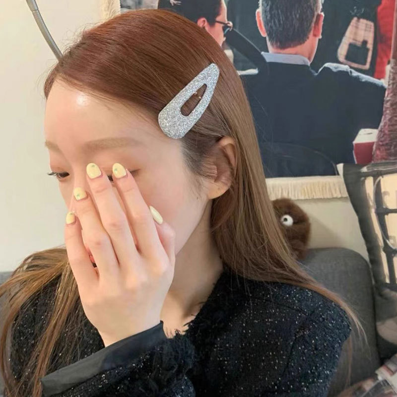 한국 귀엽 어니 같은 스타일 드롭 모양의 실버 bb 클립 사이드 뱅 헤어핀 여성용 스파클링 브레이킹 헤어핀