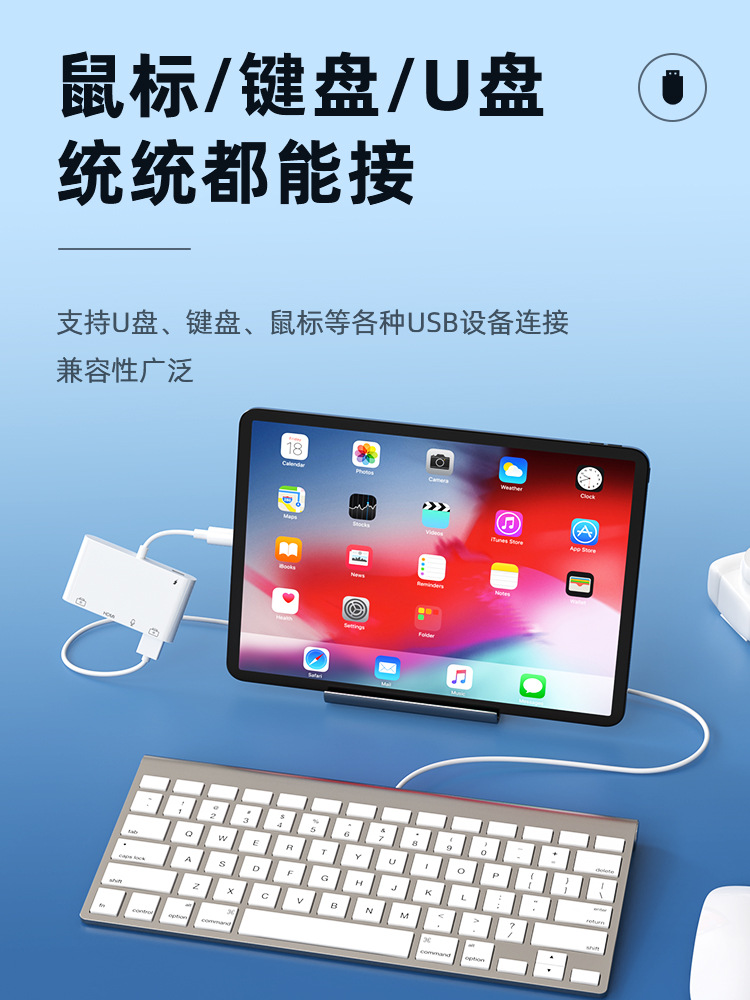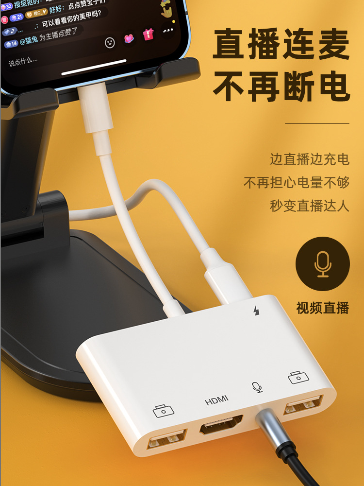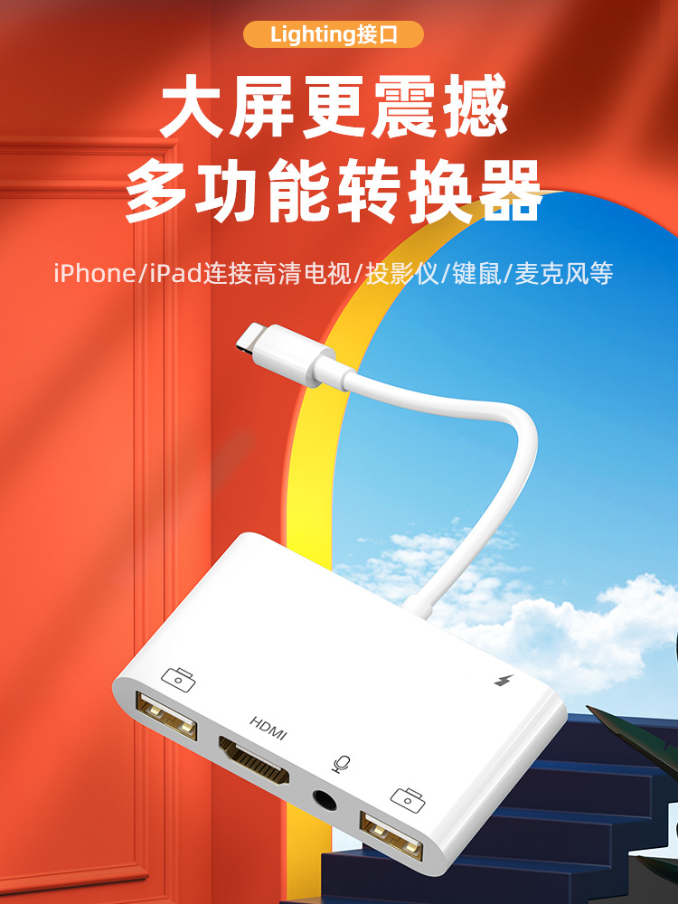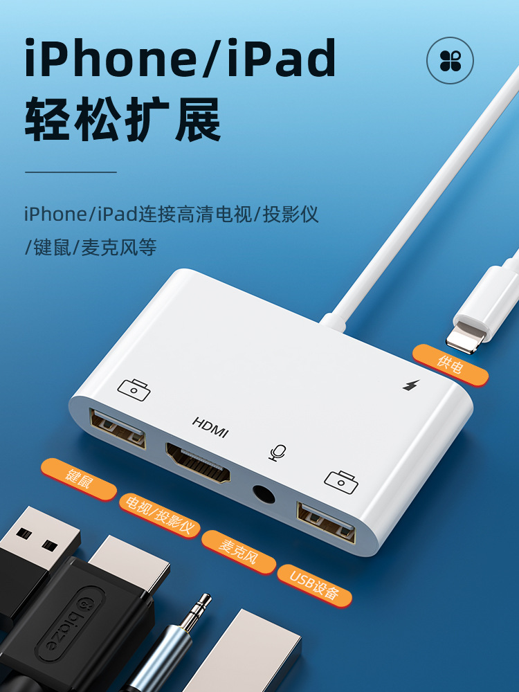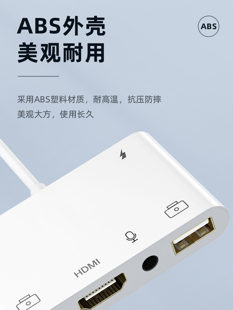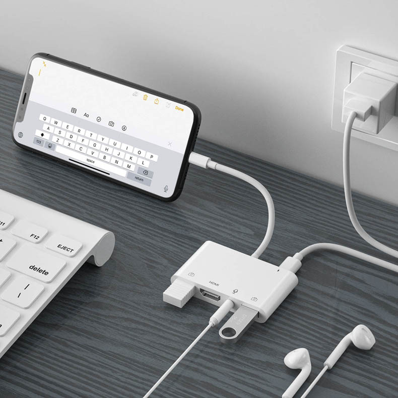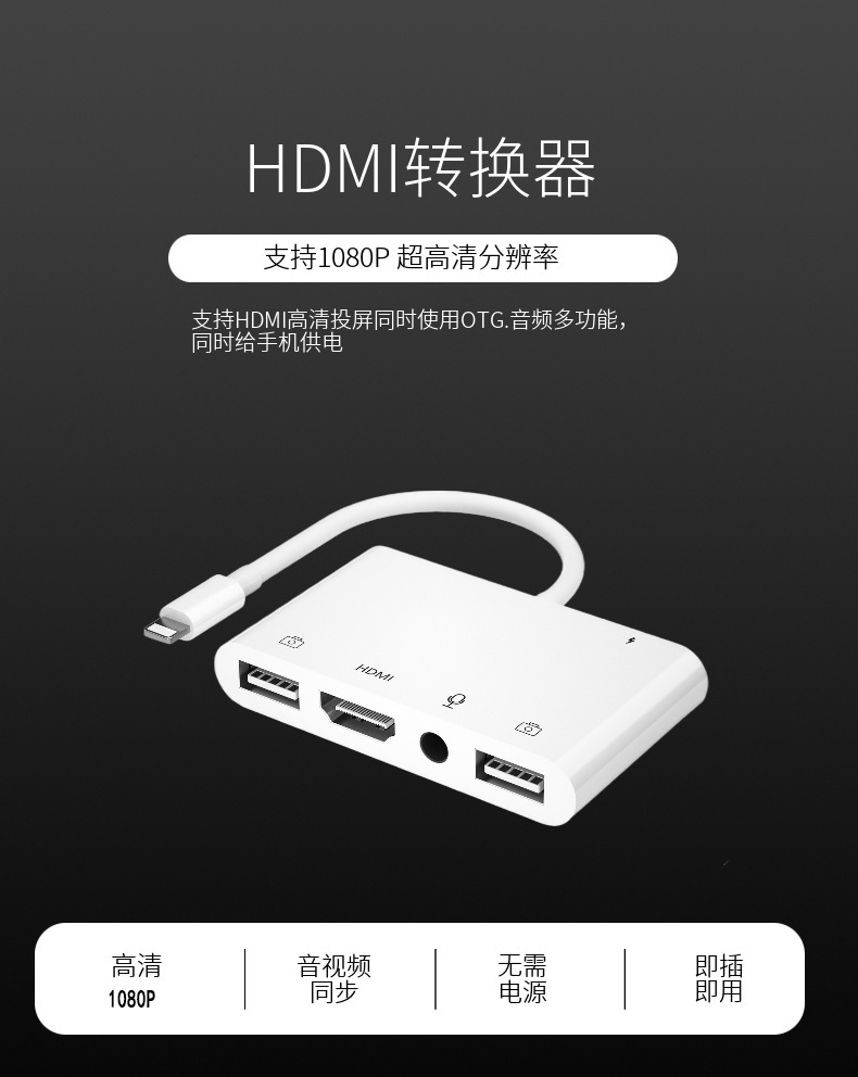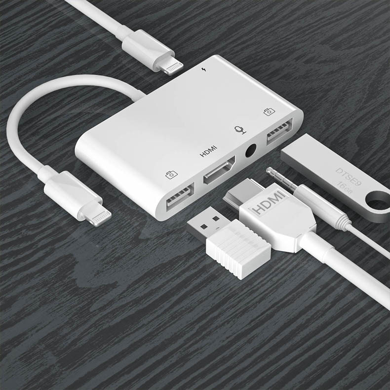 • Apple 인터페이스 5-in-1 [USB+HDMI+3.5MM+USB+Apple 충전] 고품질 무료 전원 공급 장치