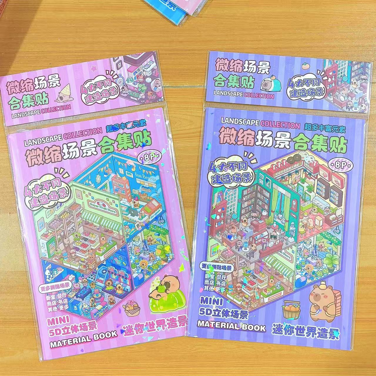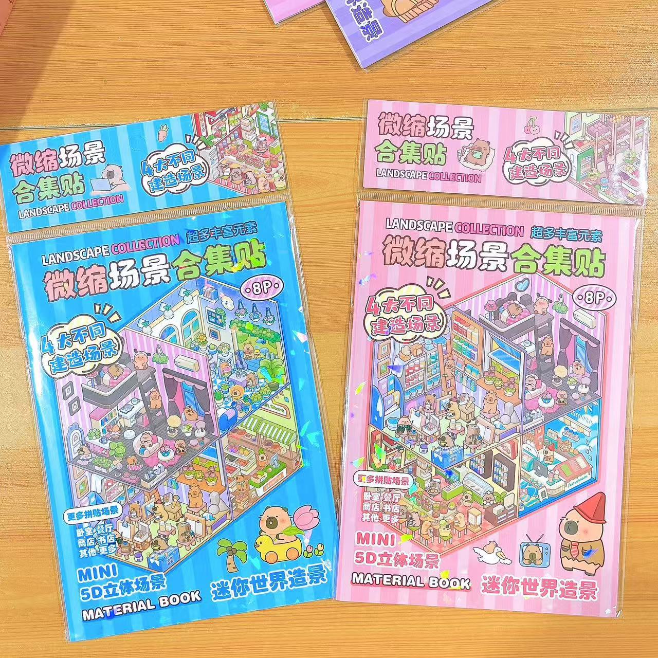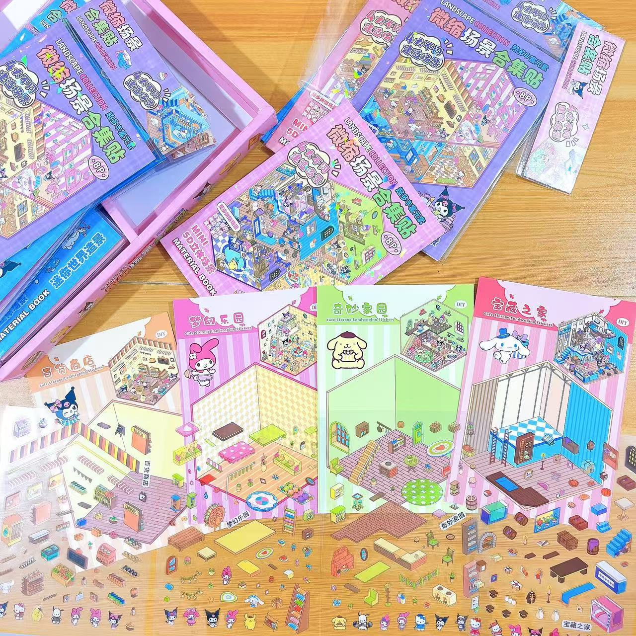 새로운 미니어처 장면 입체 퍼즐 컬렉션 조경 스티커 어린이 DIY 재미있는 만화 스티커 세트스토어 가기