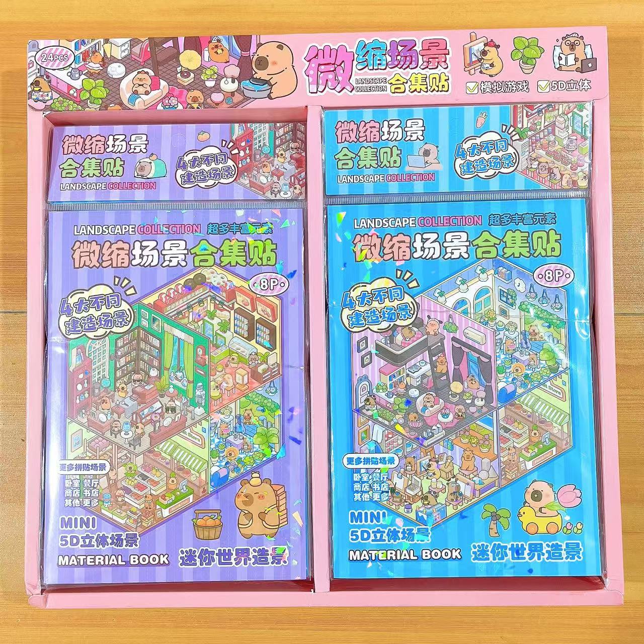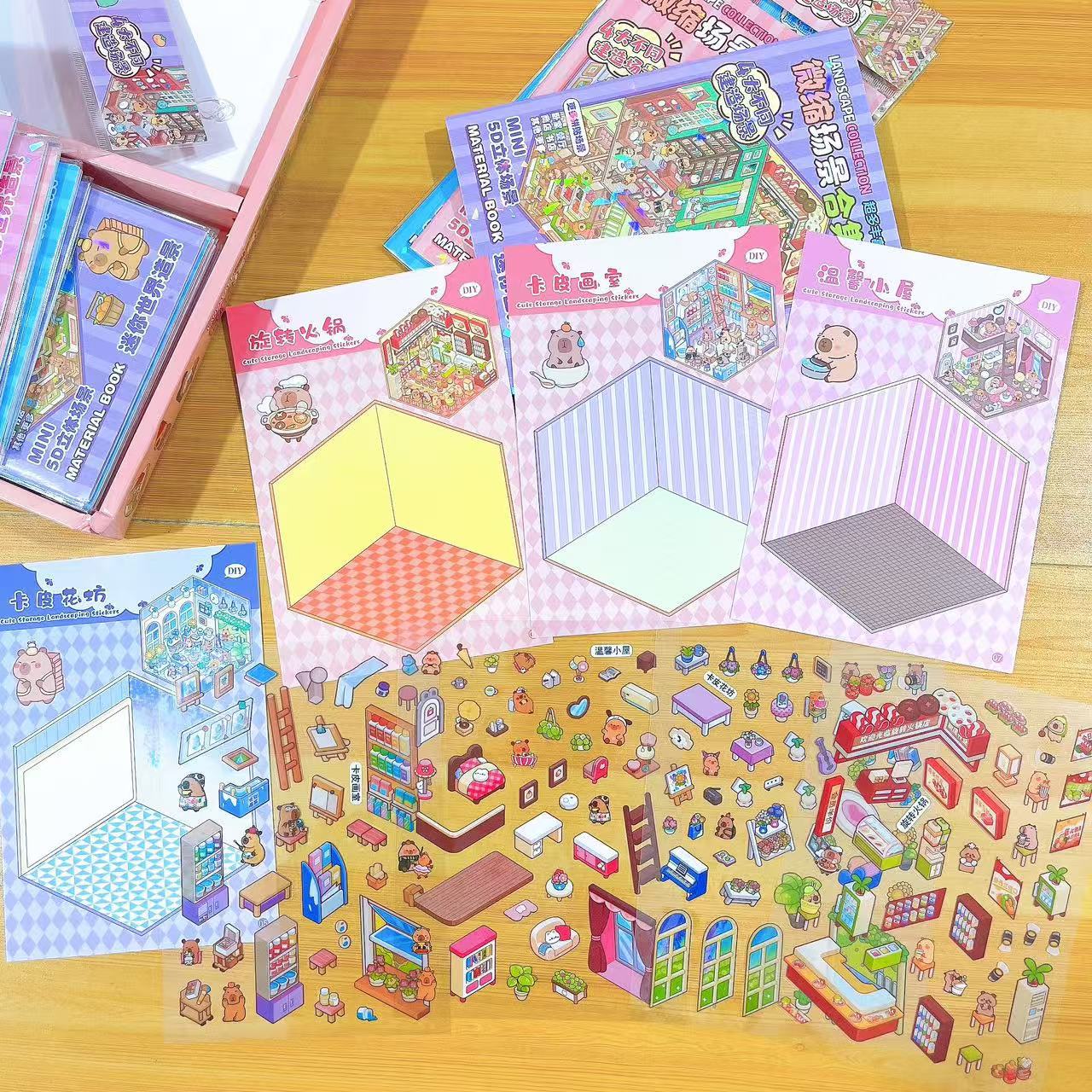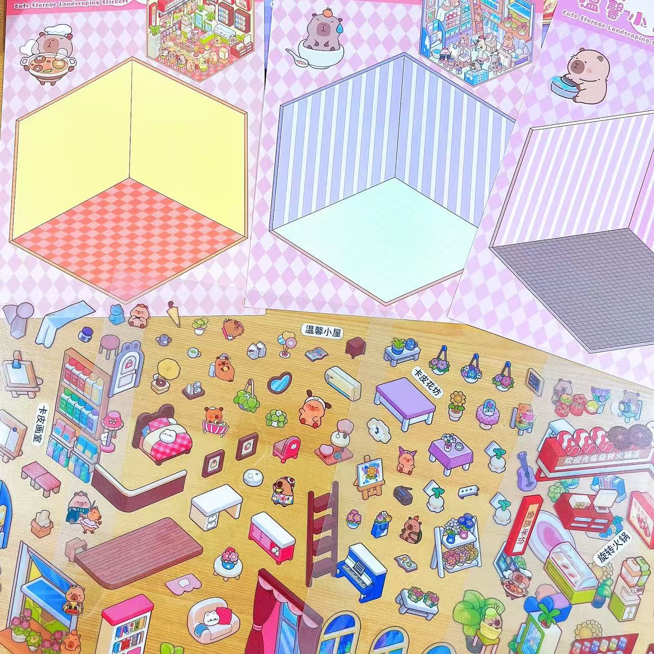 새로운 미니어처 장면 입체 퍼즐 컬렉션 조경 스티커 어린이 DIY 재미있는 만화 스티커 세트스토어 가기
